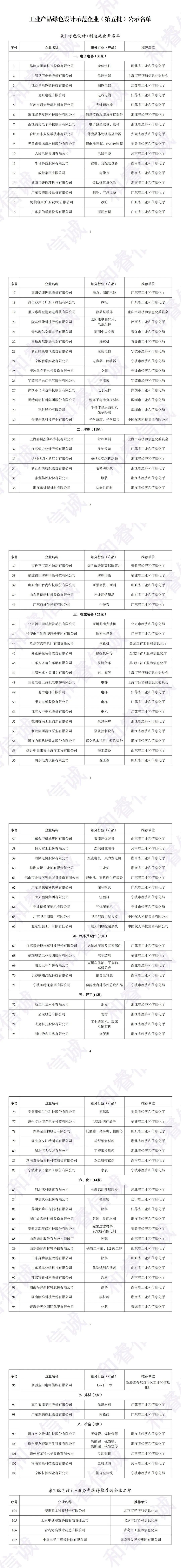 附件:工业产品绿色设计示范企业(第五批)公示名单