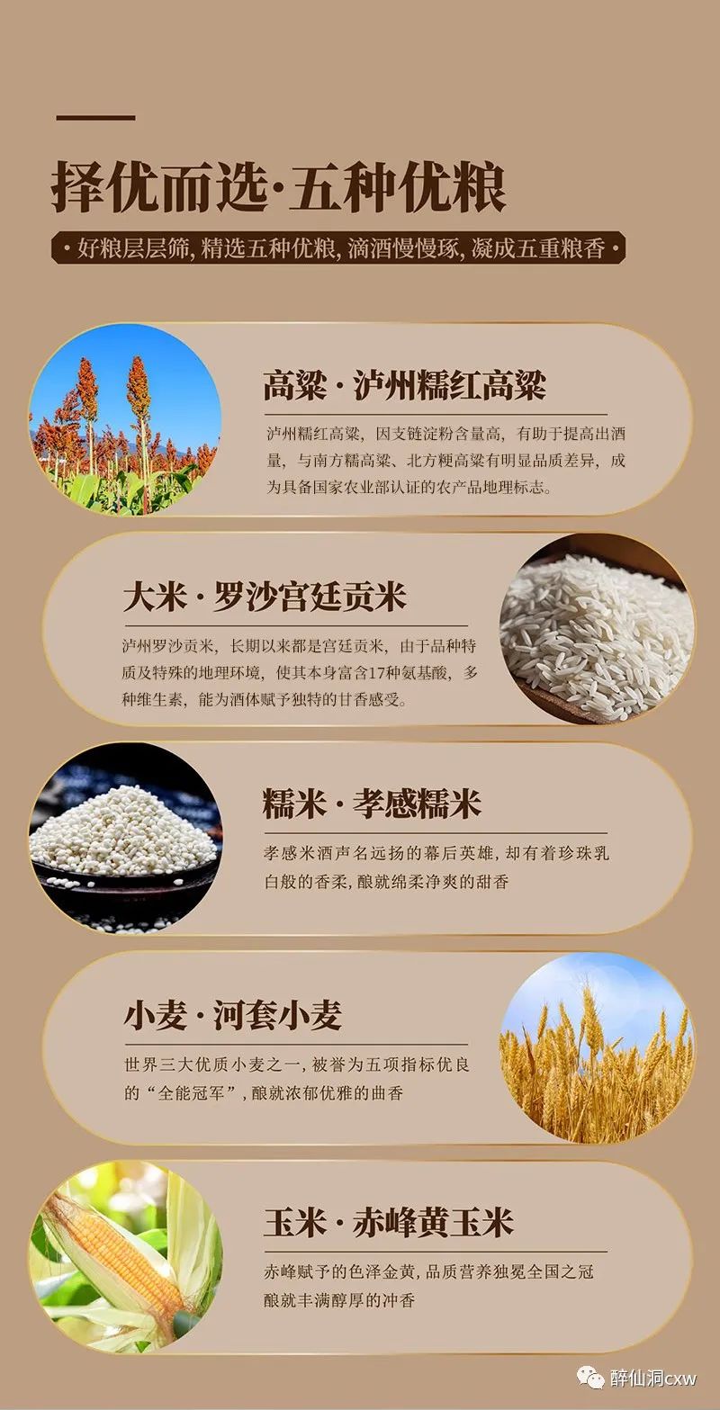 四川粮策是将高粱,大米,糯米,小麦,玉米精确按照36:22:18:16:8黄金配比酿造,成就五粮甘,香,甜,醇,冲的风味平衡。一滴粮策,五重粮香,最终秘酿出“粮策”的金樽甘露,被誉为中国白酒界的“黄金比例”