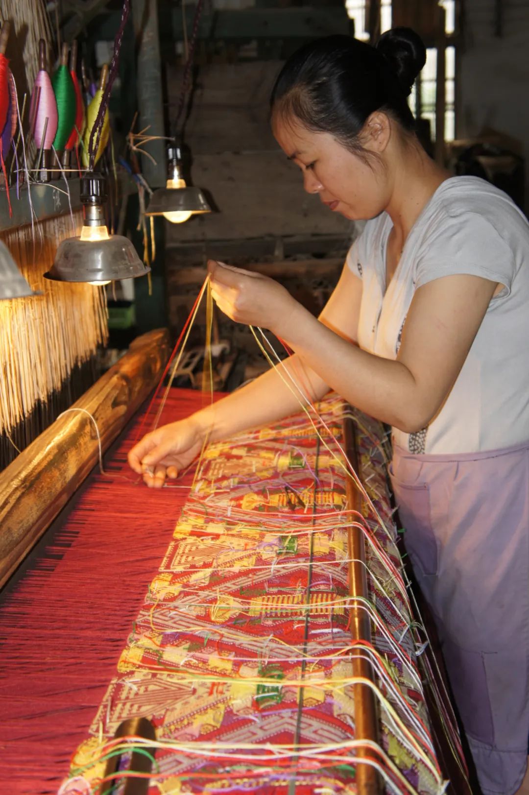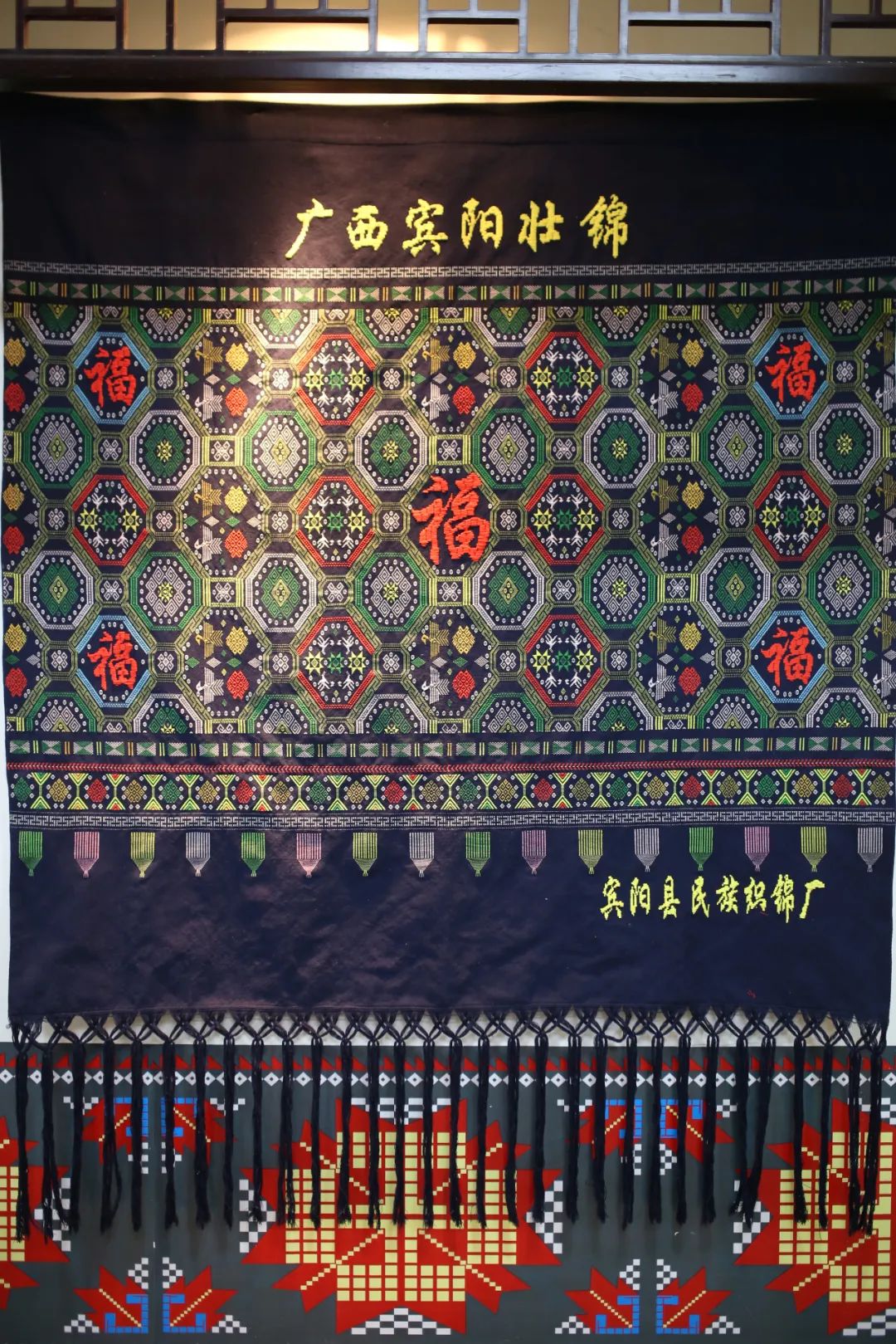 壮锦曾与历史上有名的蜀锦、云锦和宋锦一起,并称“中国四大名锦”。宾阳壮锦具有悠久历史,起源于汉代,形成于唐宋时代,至今已有1000多年的历史,是壮民族民间工艺文化的珍品,是广西壮族地区古老而优秀的文化遗产之一。宾阳织锦技艺严格地传承了传统壮锦古老的织造器械、编织工艺、编织材料和图案风格,与其他织锦器械最大的区别和特点,无疑就是悬挂在壮锦织机上的大竹笼,所以壮锦织机又被形象地称为“竹笼机”。2010年,宾阳织锦技艺列入自治区级非物质文化遗产代表性名录。