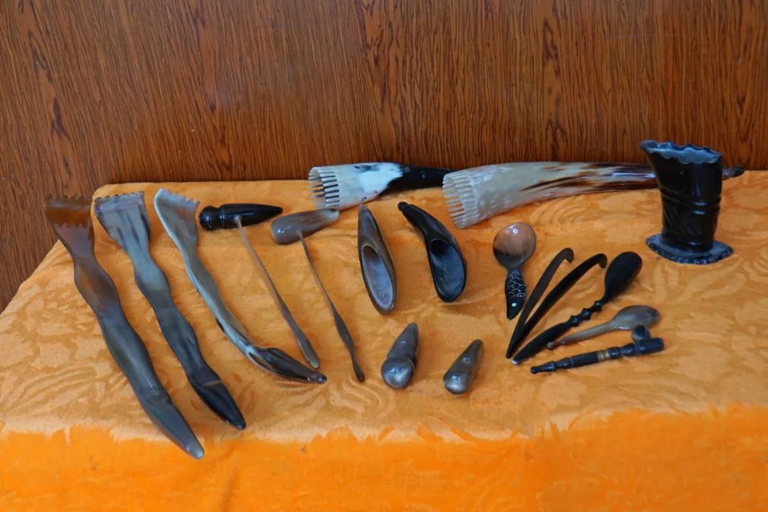 武陵牛角制作技艺源自清朝康熙年间,至今有了约300多年的历史。最初以家庭作坊形式制作牛角号、牛角刀,民国时期后发展为制作纽扣、印章雕刻以及将牛角打磨成粉与铁器混合以增加铁器的韧性,改革开放后逐渐发展成为牛角梳。至今已发展成为制作各种规格不一的精致牛角梳、不求人、刮痧器、挠痒棒、茶具、烟嘴、手镯以及牛角雕工艺品等30多种样式的品种。2020年列入自治区级非物质文化遗产代表性名录。