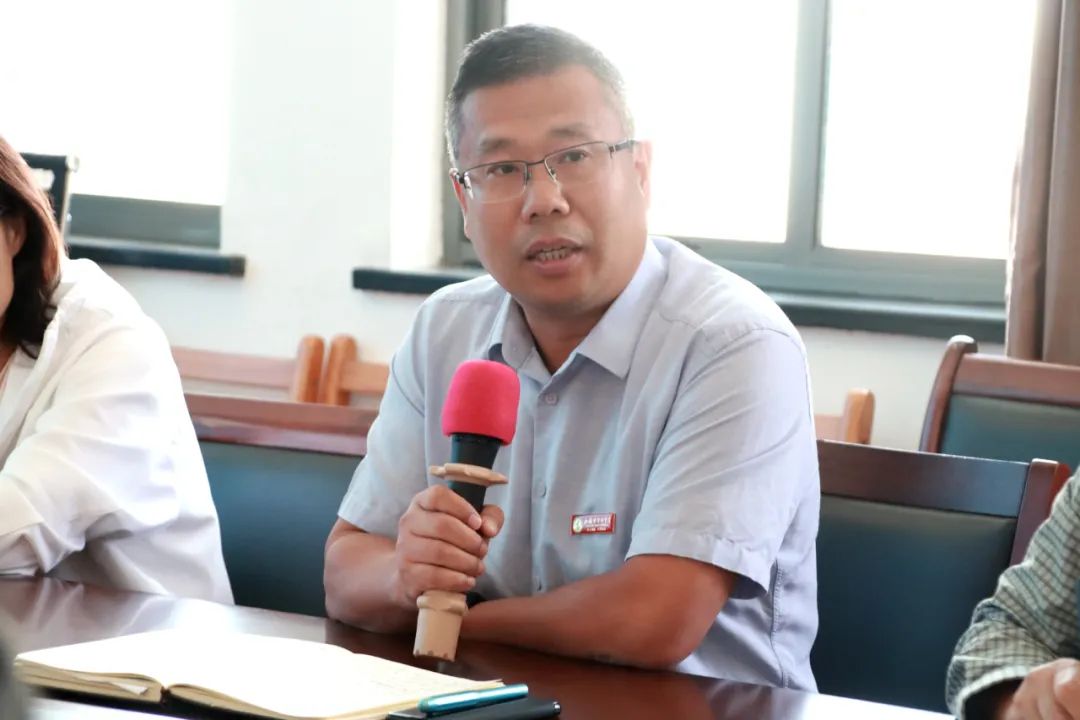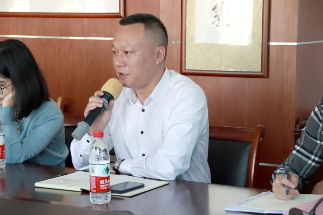 鲁国权老师在发言中由衷感谢在其成长过程中给予支持的学校领导以及一直以来共同交流进步的语文同仁。名师工作室的成立也使自己多了一份使命与担当。新课标、新课堂、新教研、新中考等新理念也需要教师们共同商讨学习。值此契机,他将与两校老师在共进之中进一步贯彻落实新理念。