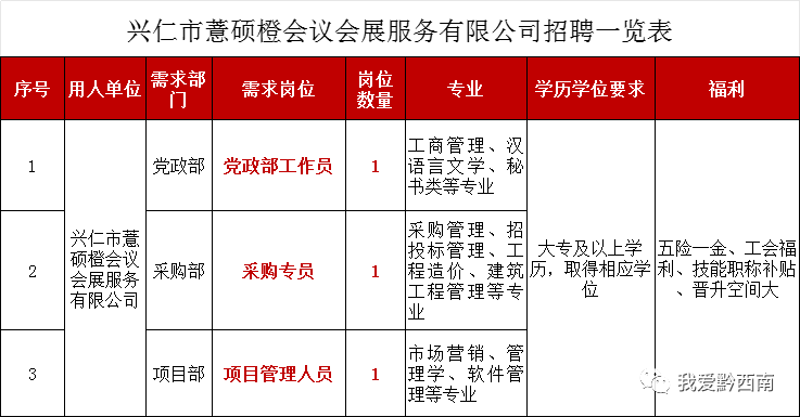 兴仁市薏硕橙会议会展服务有限公司2023年公开招聘简章