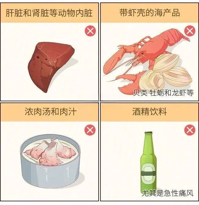 与此同时,各种酒类其实都属于高嘌呤食物,尤其是啤酒。啤酒是一种发酵的饮品,其嘌呤含量非常高,即使是经低温蒸馏蒸发酒精后的啤酒,仍可升高血尿酸水平。白酒、红酒的嘌呤含量次之。
