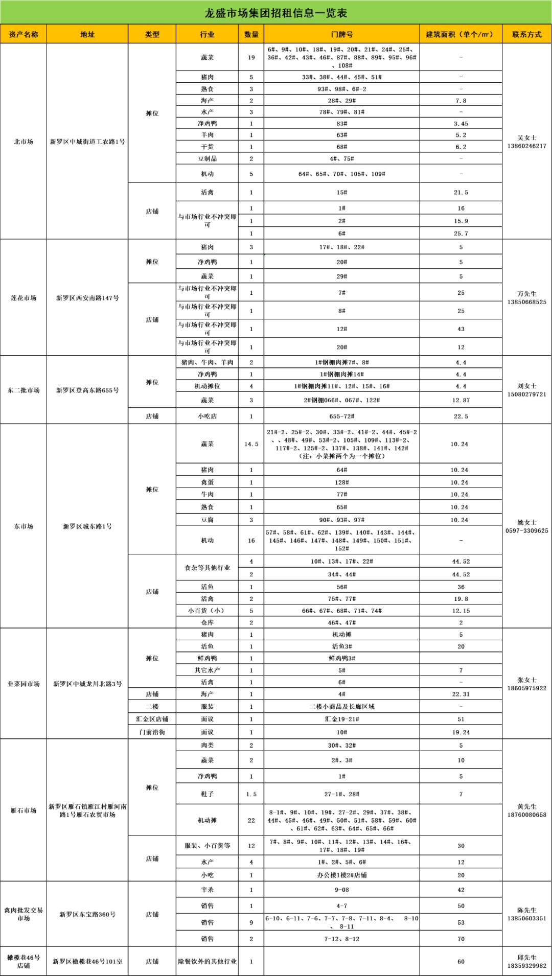 【招租公告】龙盛市场集团所属市场摊位、店铺循环公开招租