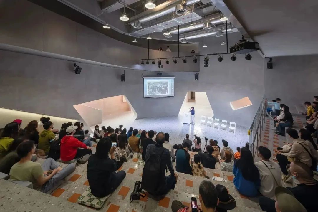 在D1我们坚持做了一个开放的报告厅,业主一开始有疑虑,因为报告厅没有门,害怕会干扰。但是为什么是干扰呢?像是一个城市的街角,大家路过听一听报告,不感兴趣就走掉,非常自由,也没有强制性。这就是城市生活,我们不知道会遇到什么。