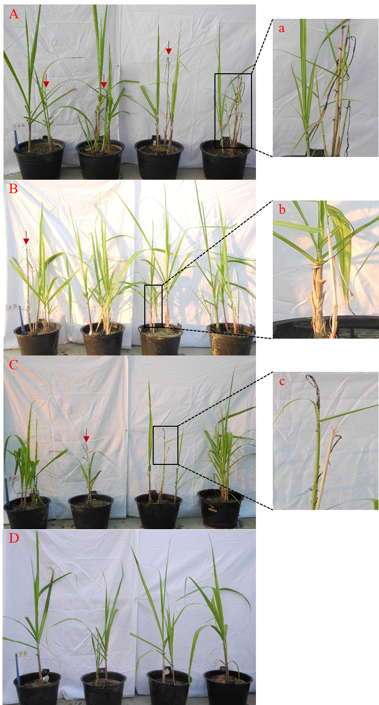 图丨硅对甘蔗黑穗病发生情况的影响(品种为Badila,仅显示部分代表性植株)