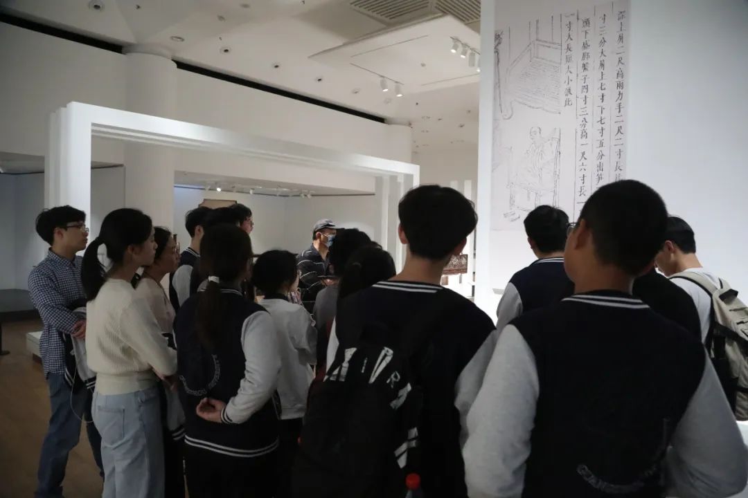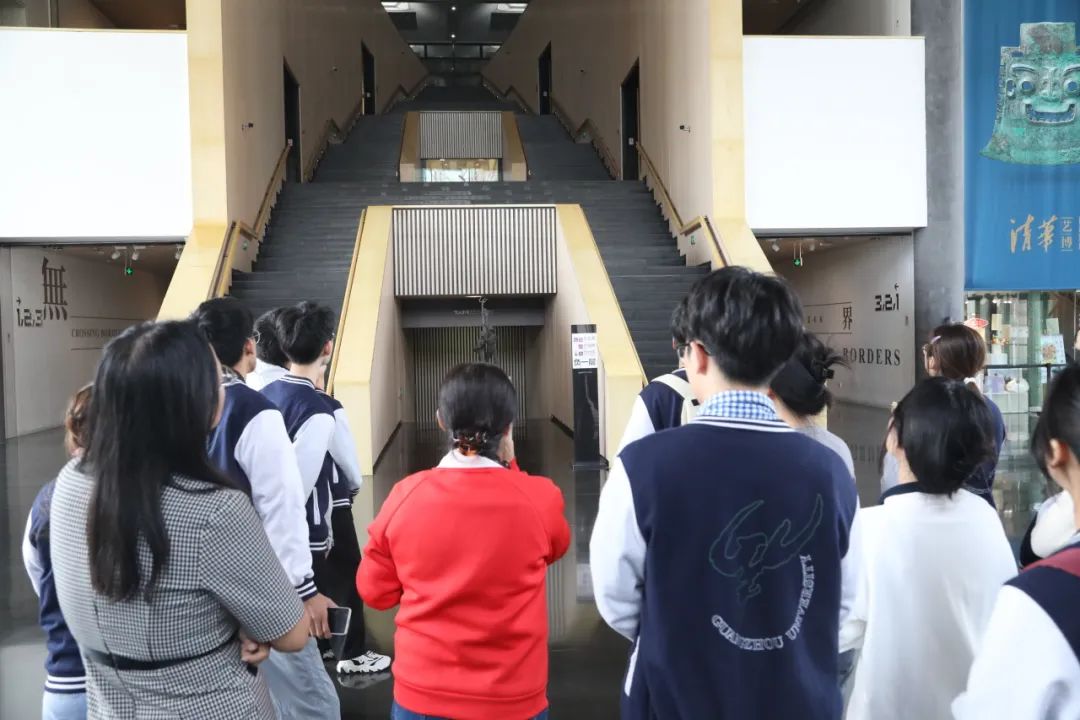 为深入感受清华的艺术氛围,了解清华的艺术背景,清华大学软件学院李佳珠老师、广州大学计算机学院艾孜尔古丽·玉素甫副院长、丁子旋老师、谭伟强老师与访学团成员一同参观了清华大学艺术博物馆。清华大学艺术博物馆是由国外著名设计师马里奥·博塔设计的,整体采用四层的阶梯结构。清华大学艺术博物馆志愿者王燕斌老师担任本次参观的讲解员。