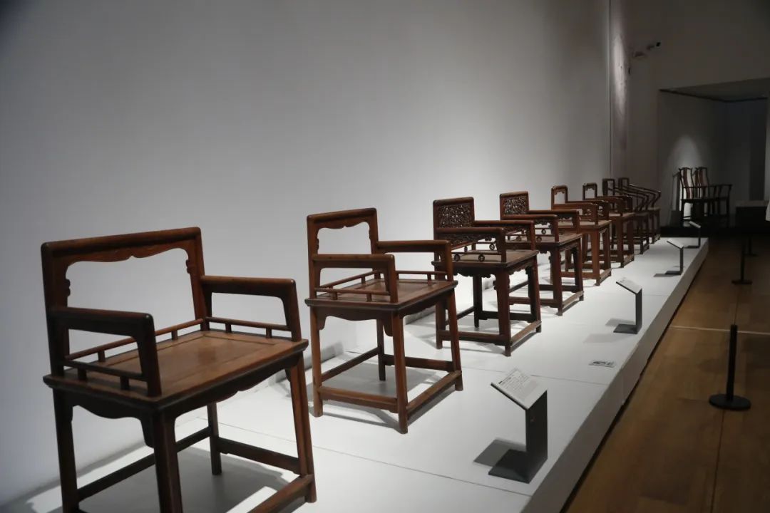 在王老师的带领下,我们首先参观了“随方制象”展区,该展区主要陈列了明清时期的特色家具,展区陈列有官帽椅、禅椅、靠背椅及各类案、几、柜等。通过深入地了解各类家具的结构部件,我们感受了明朝家具的简约典雅,清朝家具的厚重庄严。