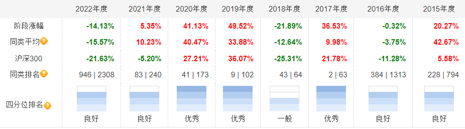 景顺长城动力平衡在2015-2022年连续8年跑赢沪深300,有7年前50%。