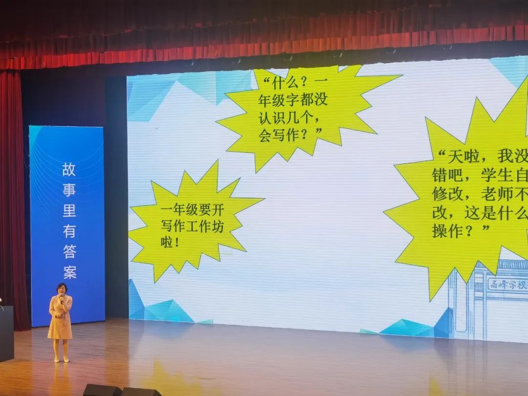 我校姚梅老师的课改故事《读写风暴》,生动地诠释了高峰学校自新课标发布以来,以读写项目为落脚点,实施素养导向的小学语文课堂改革的心路历程和成长收获。从“刚接触低年级写作课时的迷茫恐慌”到“专家指导,上课尝试,渐入佳境”“见证学生成长,倍感惊喜”三个方面展开,以质朴的语言,真实的事件,真挚的情感,赢得了“我的课改故事”演讲一等奖。