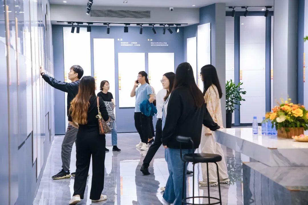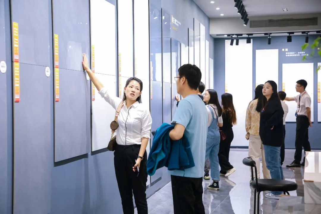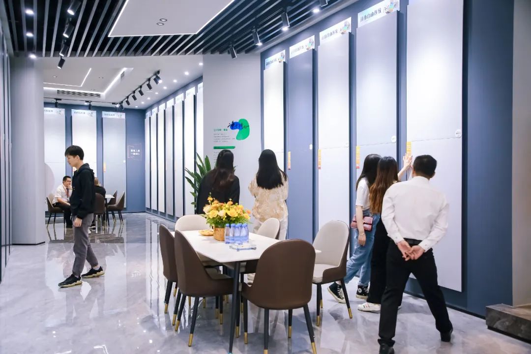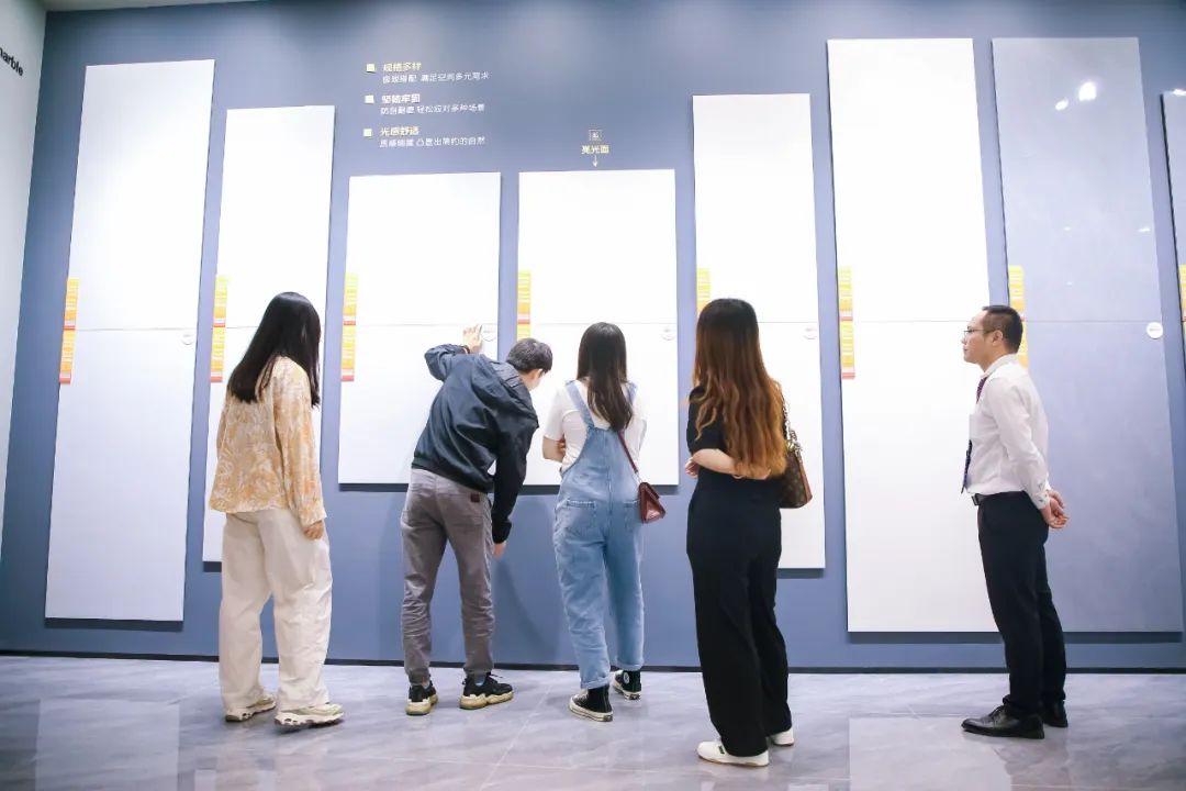 展会盛情绽放,客户如期而至。走进亿兴创展营销中心,映入眼帘的是低光感的瓷砖产品,整个展厅以产品+场景应用的展示方式,为参展者呈现出多元化美学应用,打造出更具价值的产品和极致的空间体验。