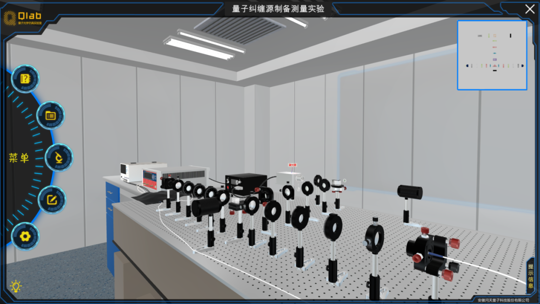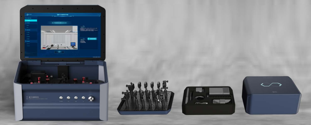 量子纠缠教学机是一个专门为高年级本科生或低年级研究生设计的一体式实验教学工具箱。它基于量子纠缠的核心资源,以虚拟仿真 + 实体结合的方式,并配套设计一系列梯度化难度的实验,在提高学生的动手能力的同时让他们了解基本的量子现象。教学机配套完善的实验讲义,课件和操作视频,可助力高校物理、光学、通信等专业背景的学院,快速开设量子光学或量子物理实验课程。一套专门针对量子信息课堂教学演示和学生动手学习的低成本解决方案。量子纠缠源等量子光学实验装置是量子信息领域研究、教学的核心资源模块之一。实体纠缠源产生装置广泛应用于科学研究、课堂教学等方面。但是量子纠缠源实体装置存在价格昂贵、对实验环境要求苛刻、易损坏以及量子光信号无法可视化等诸多问题。问天量子联合国际上实验教学信息化行业的开拓者,仿真实验的发明人——科大奥锐共同研发,以量子信息专业之核驱虚拟仿真领航之舟,推出面向教学的:量子光学 3D 虚拟仿真软件 Qlab, 完美解决上述问题,助力量子信息教学推广,适用于理工科高等教育实验课、教师课堂演示、低年级研究生前期培训等场景应用。