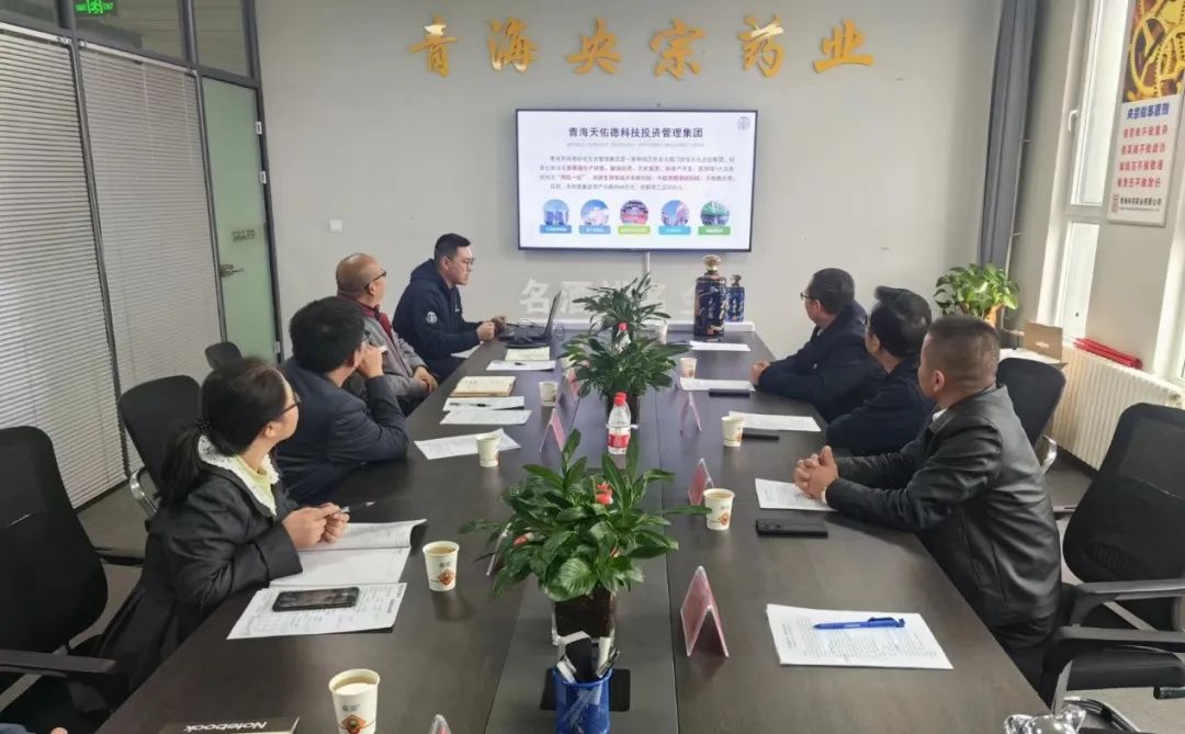 在会议室交流阶段, 青海央宗药业有限公司对天佑德青稞酒公司一行的到来表示热烈欢迎,周国华副总经理表示公司始终把培养人才、留住人才、发展人才作为用人的基本原则。通过这些年的发展和挖掘,培养了一批有技术、懂技能、勇担当、负责人的各岗位中坚力量和管理人员。为了更好地服务于社会,我们将严格按照新药品管理办法和药品生产监督管理办法要求,严格按照习总书记“四个最美”的标准来执行,切实做到落实企业主体责任。严格遵守药品生产的法律法规,严把质量关,严控生产各环节,严把产品放行关,既要做良心企业,更要做让老百姓放心的质量无隐患企业。不断实现自我跨越,向着更加辉煌的目标迈进。天佑德青稞酒公司向青海央宗药业有限公司参会人员展示了天佑德品牌宣传片和公司党建宣传片,品牌宣讲大使于瀚智向大家讲解了公司发展历程和社会责任践行情况。曹文军书记介绍了公司四美战略、公司的理念、天酿工艺、青稞的种植基地等。