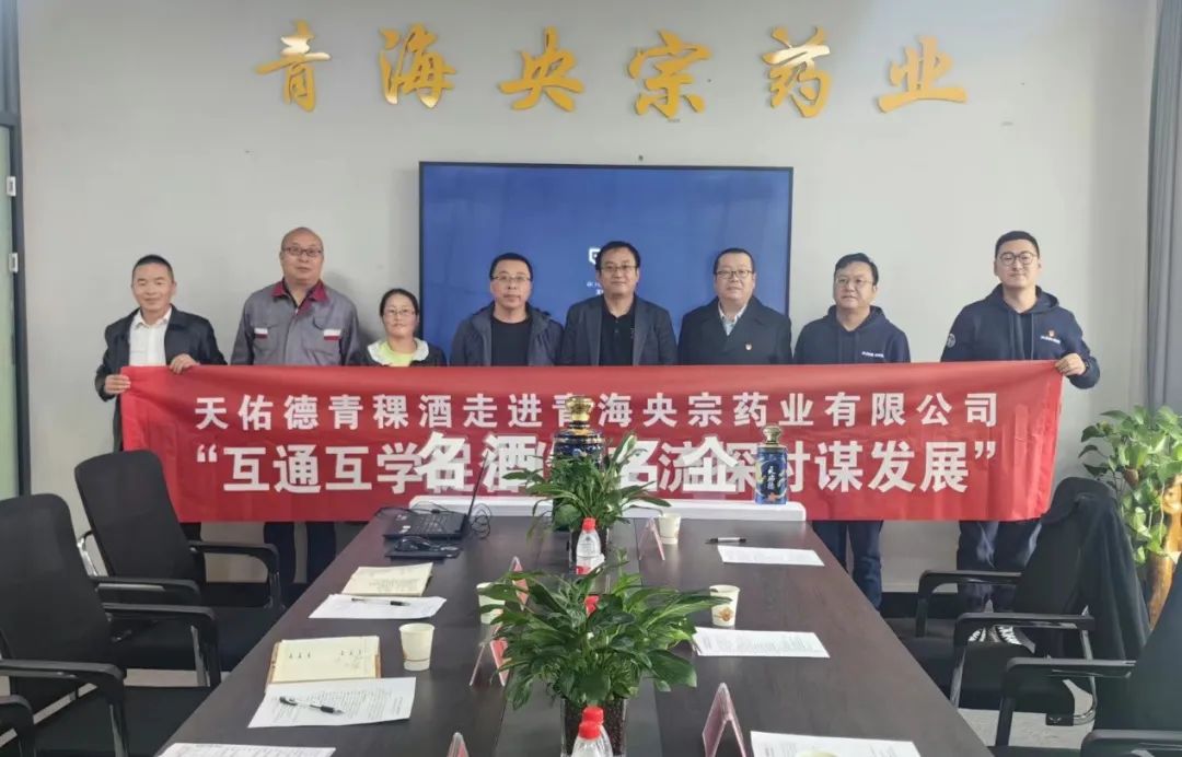 10月12日上午,天佑德青稞酒走进青海央宗药业有限公司 ,开展以“互通互学促合作,交流探讨谋发展”为主题的党建交流活动。青海央宗药业有限公司副总经理周国华,副总经理喇鑫,综合部经理徐振军,生产部经理腾贵天,销售中心王春梅;天佑德青稞酒公司机关二支部书记曹文军,营销经理丁树师,销售主管郭兴林,团购经理赵仕林,品牌宣讲大使于瀚智共同参加此次交流活动。