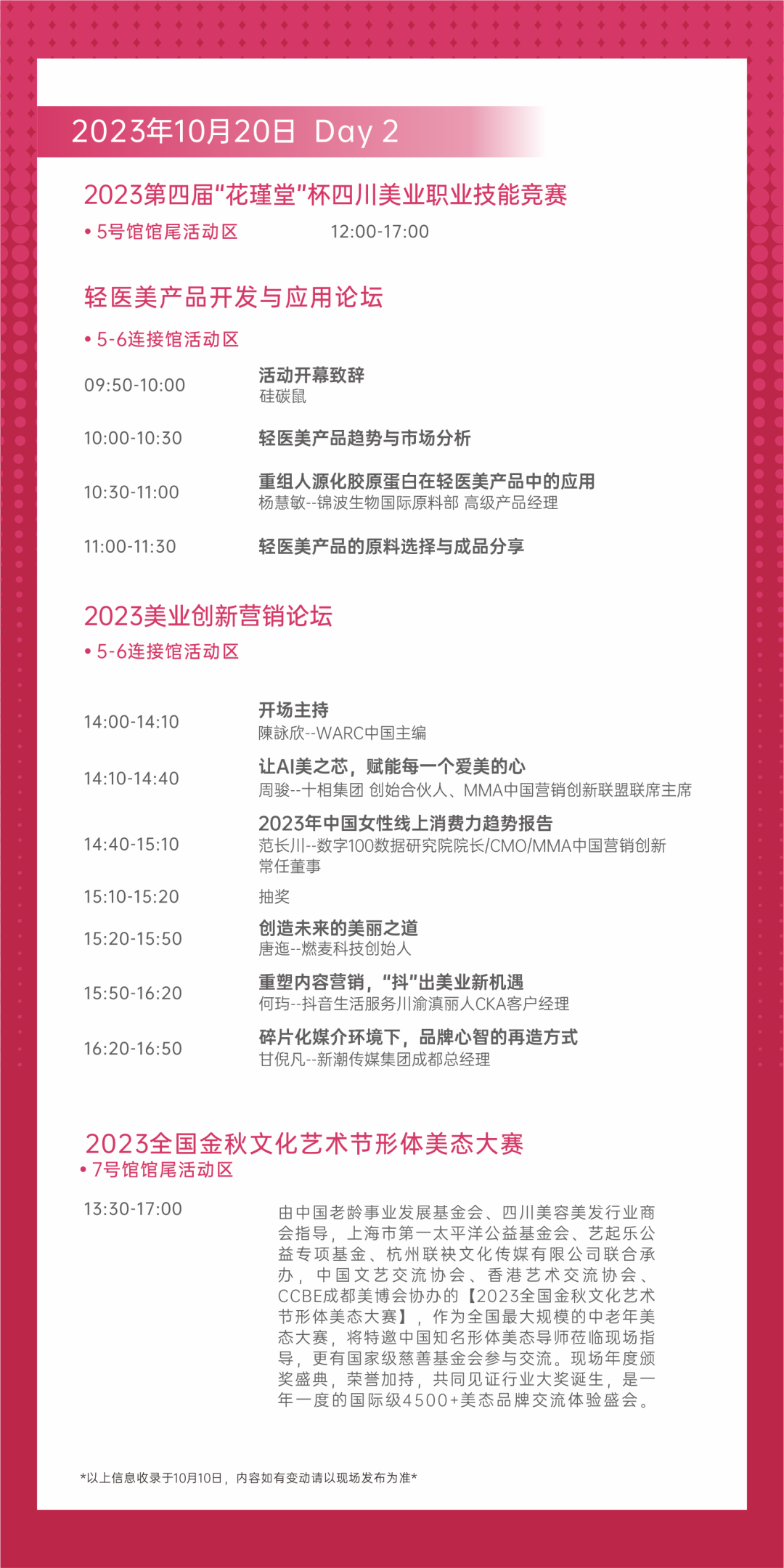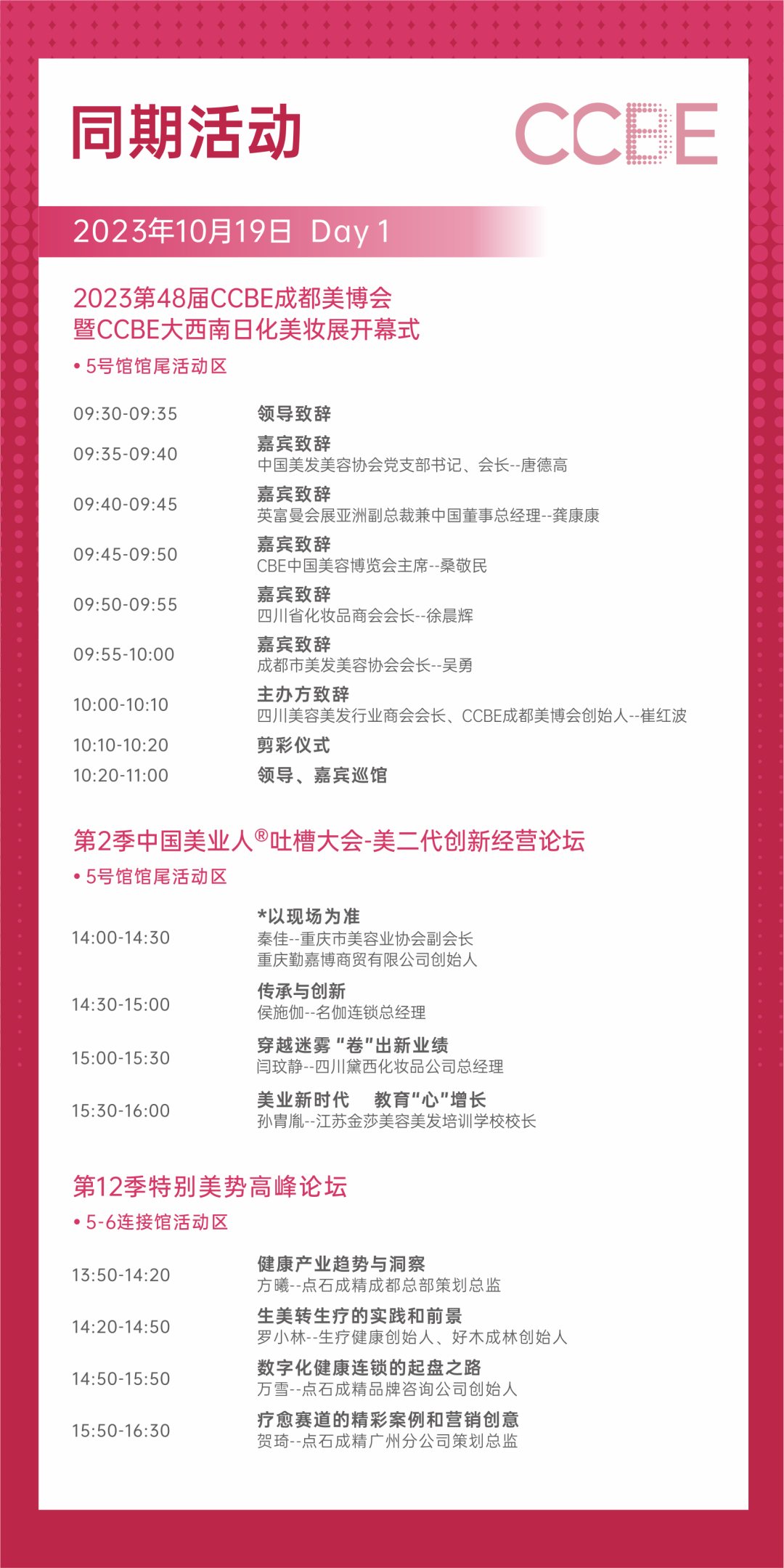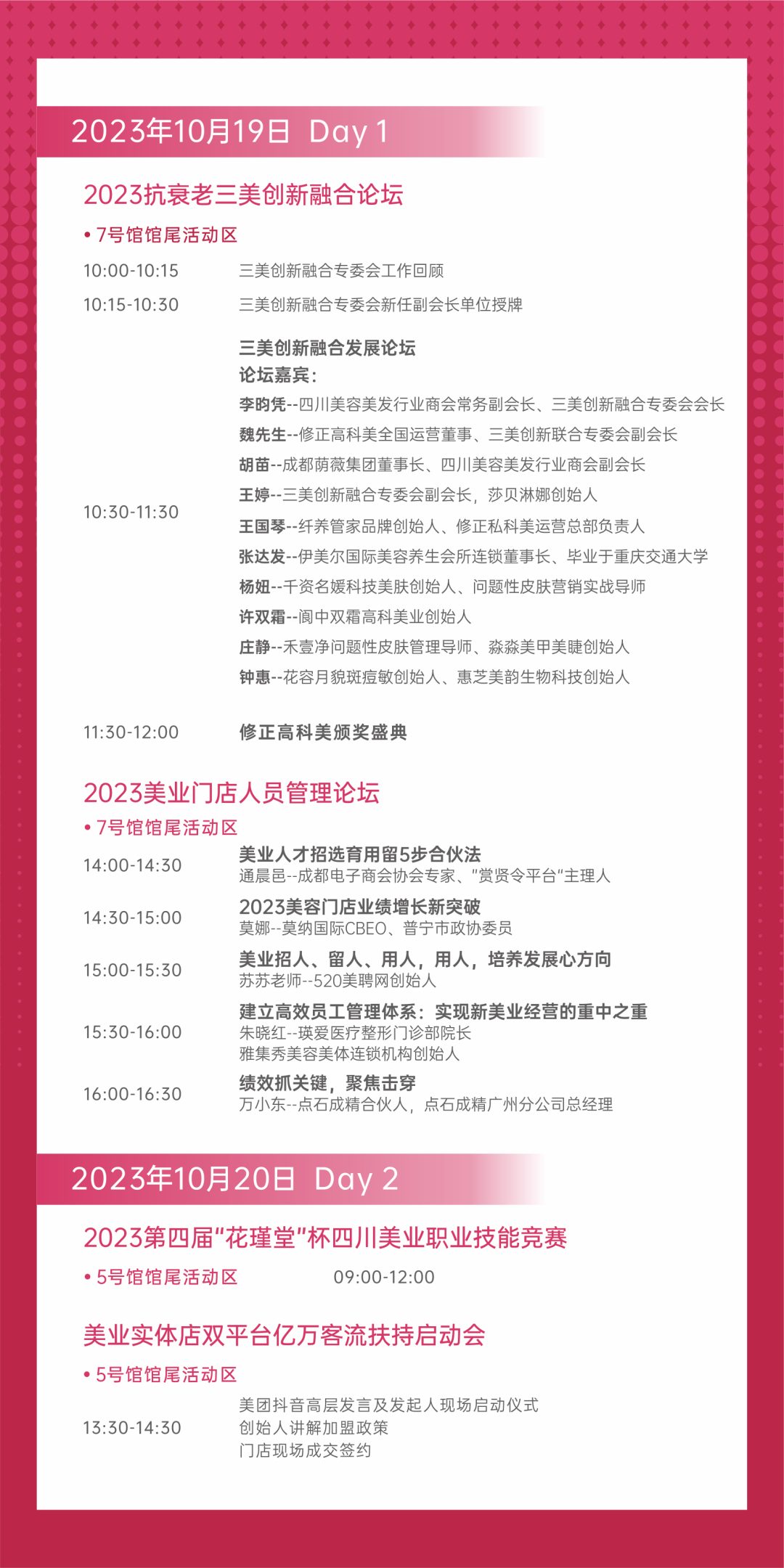 行业活动是学习交流的重要窗口,本届成都美博会同期策划了10+主题活动及20+趋势发布会,覆盖门店经营、人员管理、创新营销、企业转型……以及美业新风口、新赛道的发布等多个角度,为美业人带来全新的生意思路与趋势参考。