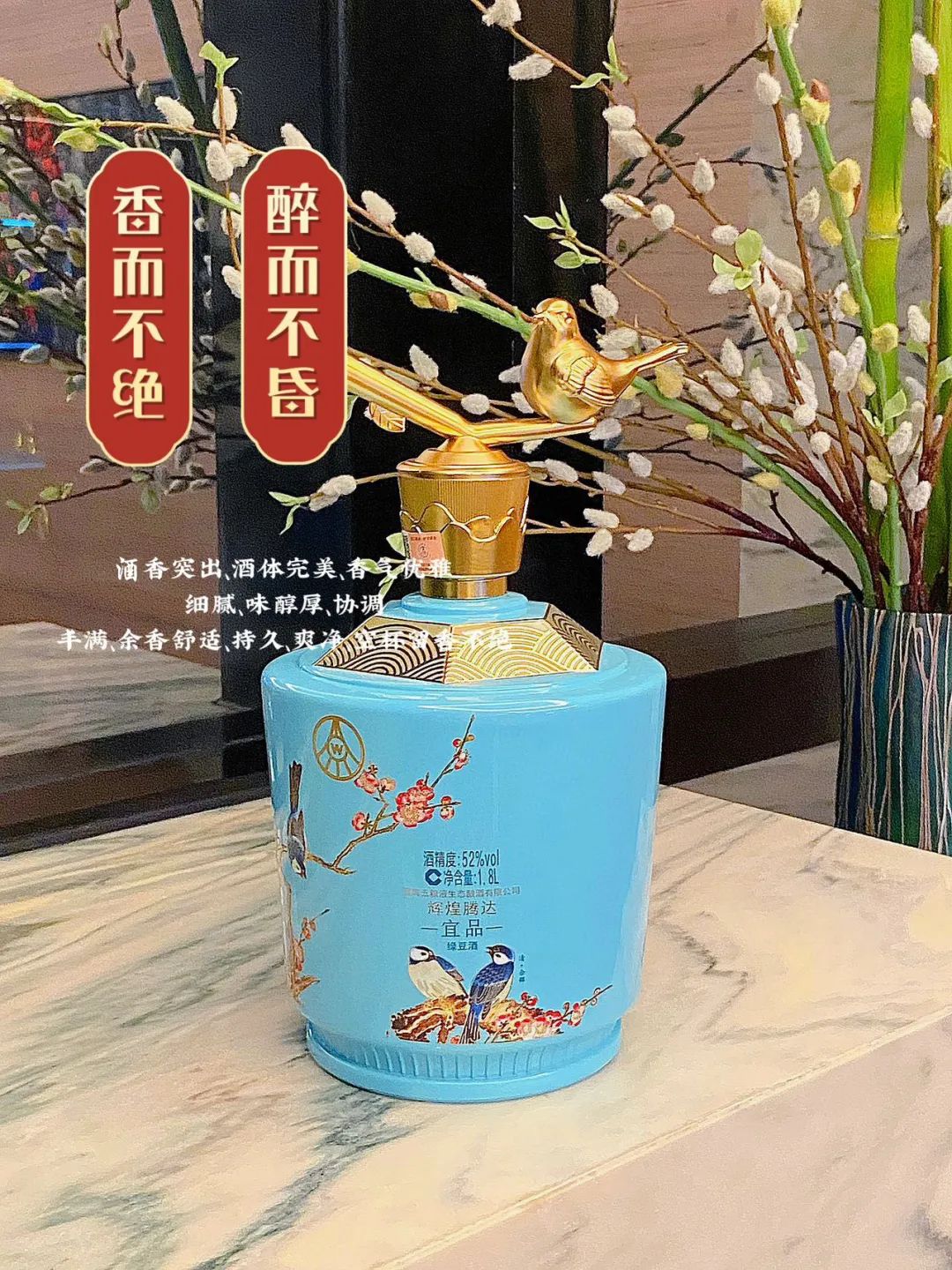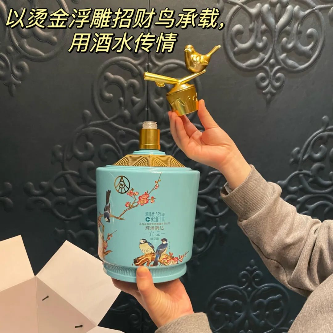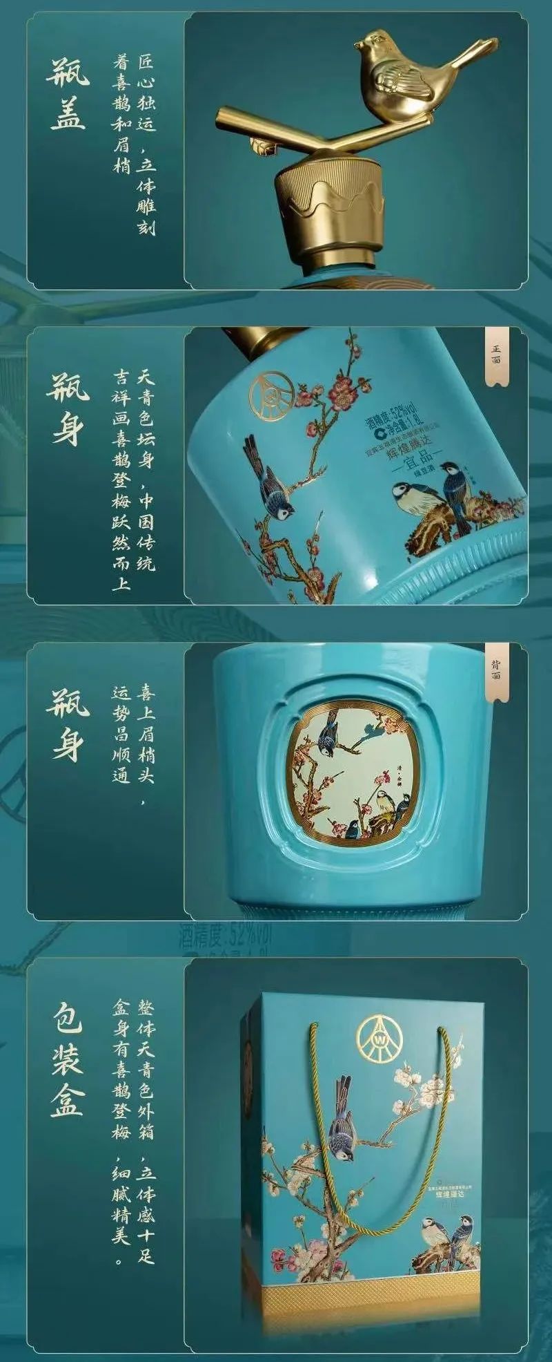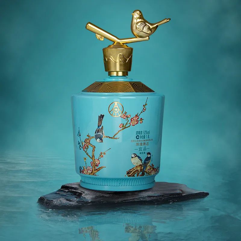 瓶身处有烫金浮雕招财鸟,底色蒂芙尼蓝更显贵气。