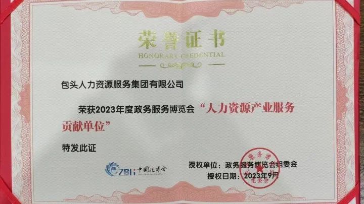 近日,由中国通信工业协会主办、中国通信工业协会数字政务专业委员会等单位承办的“2023政务博览会暨首届人力资源服务产业高质量发展峰会”在武汉市汉阳区举行。包头人力资源服务集团有限公司作为区域内品牌影响力出众的综合性人力资源服务机构荣膺2023政博会“人力资源产业服务贡献单位”。
