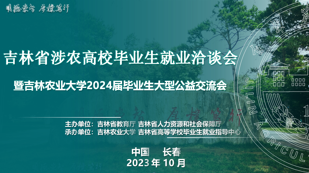 为促进毕业生高质量充分就业,由吉林省教育厅、吉林省人力资源和社会保障厅主办,吉林农业大学、吉林省高等学校毕业生就业指导中心、吉林省人才交流开发中心承办的吉林省涉农高校毕业生就业洽谈会暨吉林农业大学2024届毕业生大型公益交流会即将召开,届时将有来自全国22个省份的321家高质量用人单位前来招聘,欢迎各位毕业生积极应聘!