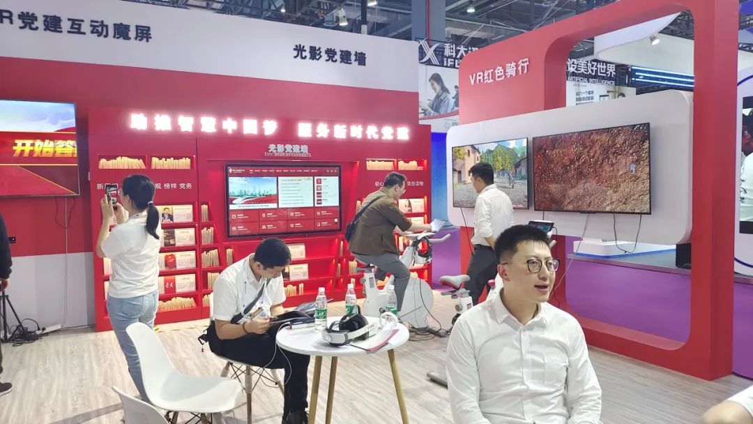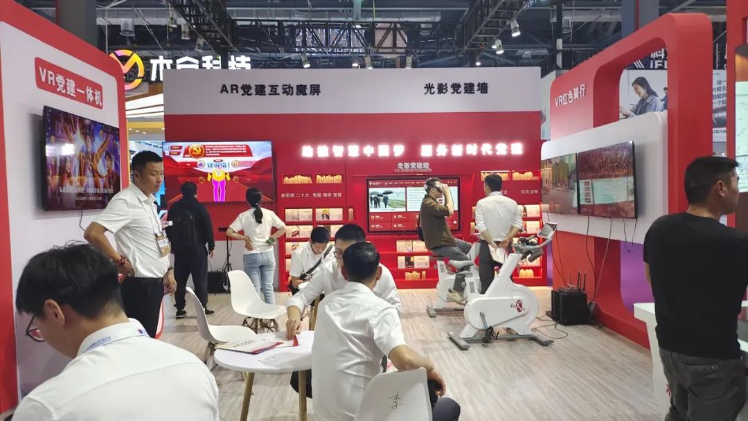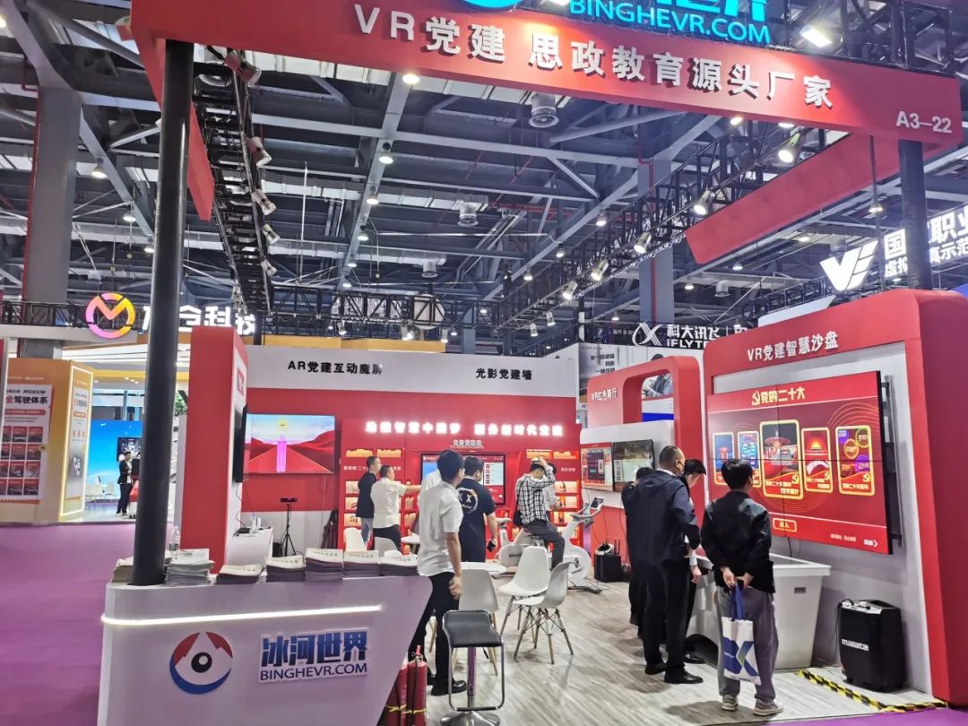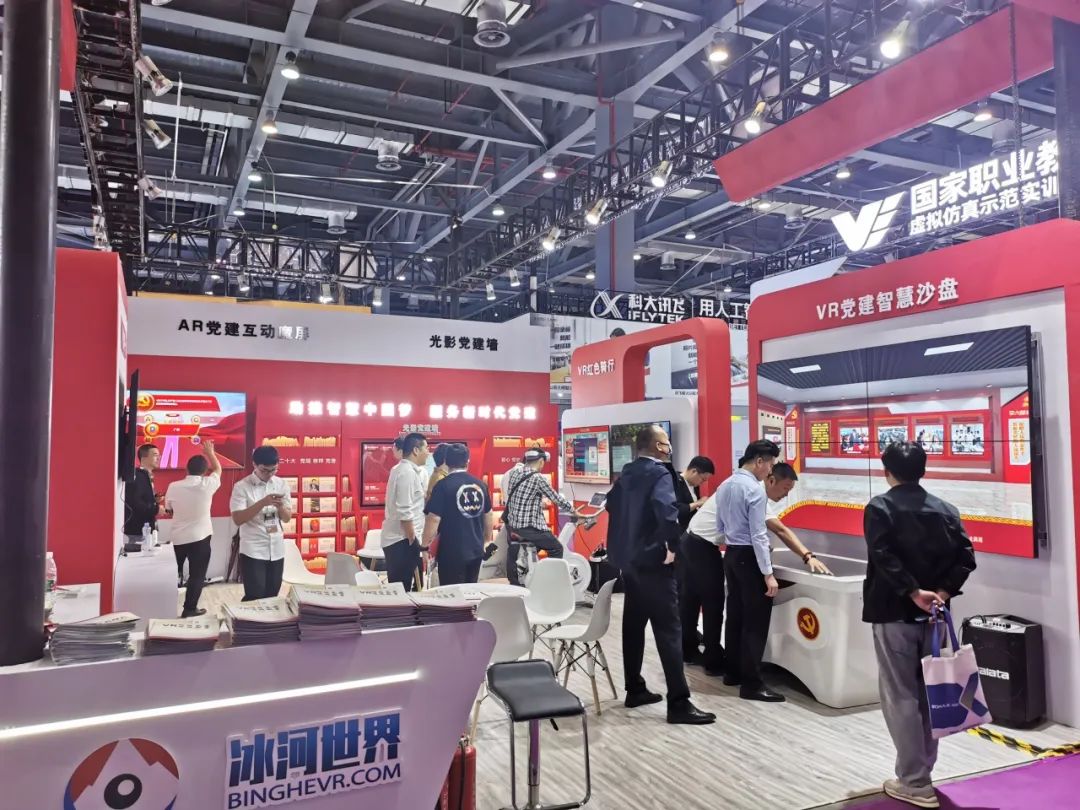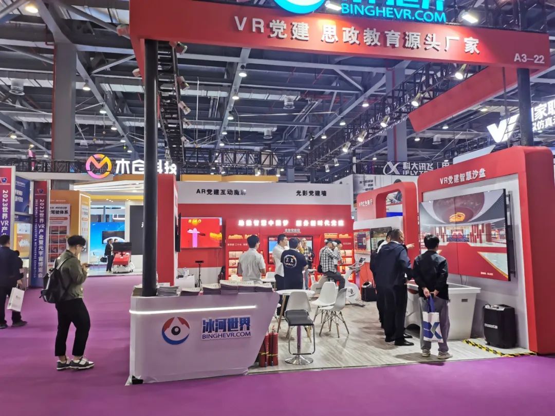 本次大会上,北京冰河世界携,VR党建智慧沙盘、VR红色骑行、VR党建一体机、AR党建互动魔屏、VR思政学习系统、红色互动投影等一系列助推思政教育高质量发展产品,亮相【2023世界VR产业暨元宇宙博览会】A3-22展位
