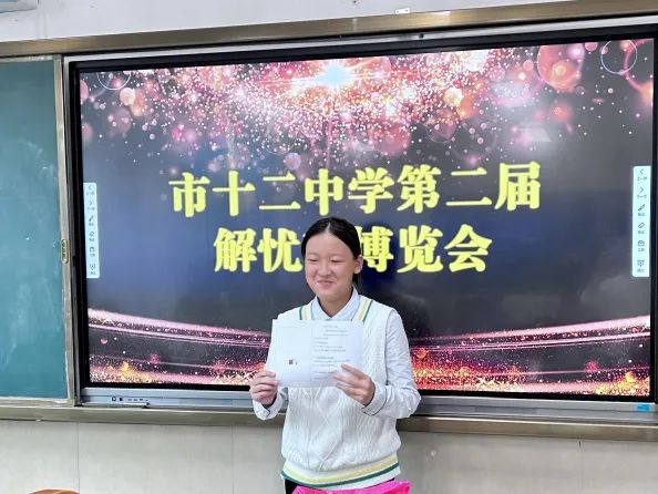 2023年10月,我校初一、初二年级举行了第二届“解忧药铺”博览会活动。同学们纷纷参与其中,分享自己的智慧成果。