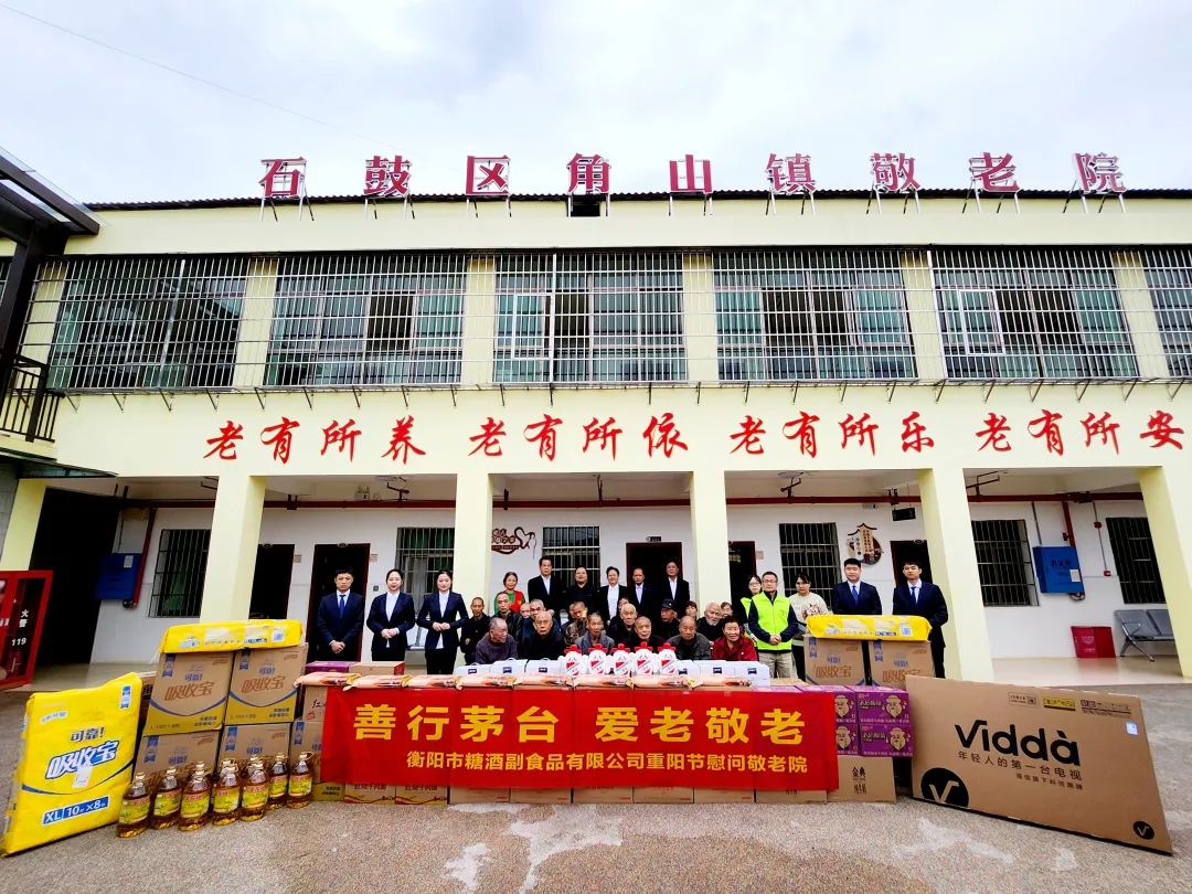 秋风徐徐丹桂香,重阳九九显真情。为践行茅台“大品牌、大担当”的社会责任观,传承“爱老、敬老”的传统美德,2023年10月20日,值重阳节来临之际,衡阳市糖酒副食品有限公司组织贵州茅台专卖店员工在石鼓区角山镇敬老院开展“善行茅台 爱老敬老”重阳节第四年慰问活动,为老人们送上米、油、牛奶、方便面、电视机等生活用品,同时为卧病在床的老人送上慰问金,并致以诚挚的节日问候,让老人们感受到社会的温暖与关怀。