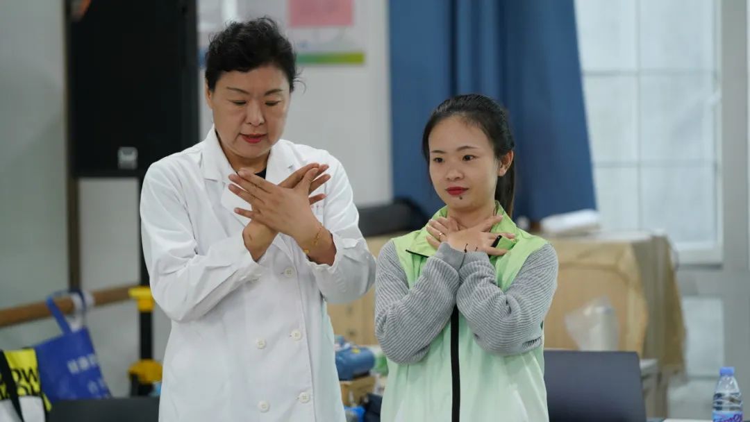 为了让大家真正听懂、熟练操作,周医生针对常见哽噎危及生命的案例,向大家强调了掌握“海姆立克急救法”的必要性,并指导志愿者们进行实地模拟,为在紧急情况下能够迅速采取有效措施打下良好的基础。