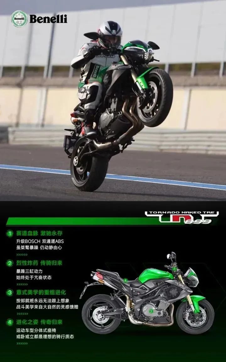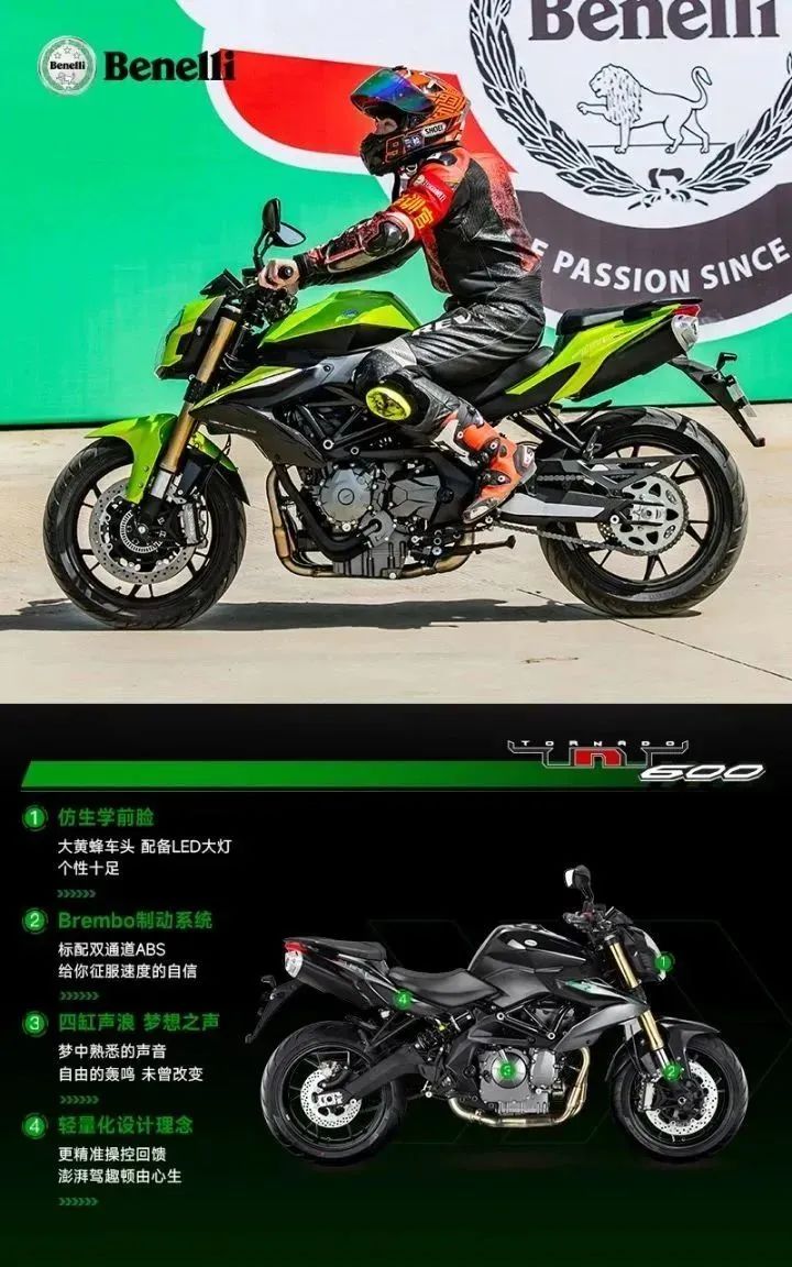 贝纳利(Benelli)诞生于1911年,研发中心位于意大利佩萨罗,是意大利最悠久的摩托车品牌之一,曾连续4年获得意大利摩托车锦标赛冠军。充满激情的驾驶体验与个性的美学设计是它的图腾。
