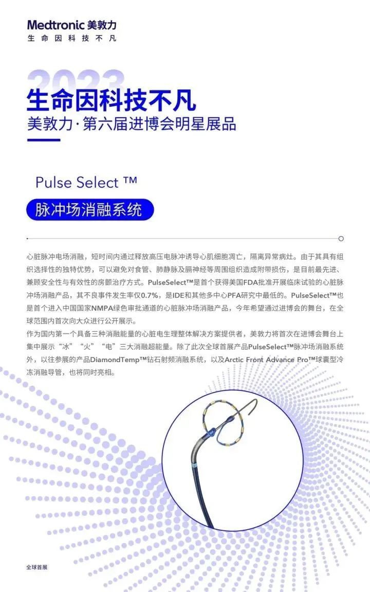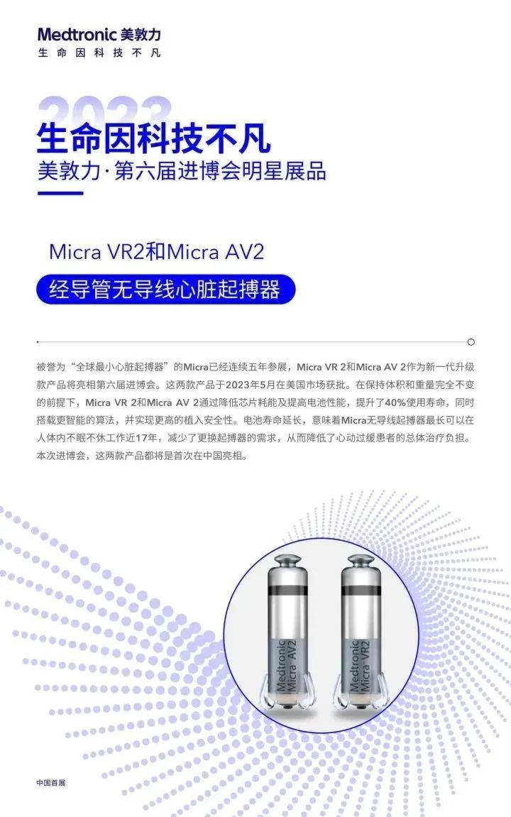 Pulse Select™脉冲场消融系统、Heli-FX™ EndoAnchor™ System主动脉内锚定系统、Concerto可解脱弹簧圈、SimuForm™半硬质成型环、PillCam™ patency capsule 探路胶囊、Micra VR2和Micra AV2经导管无导线心脏起搏器将在第六届进博会上首次亮相。