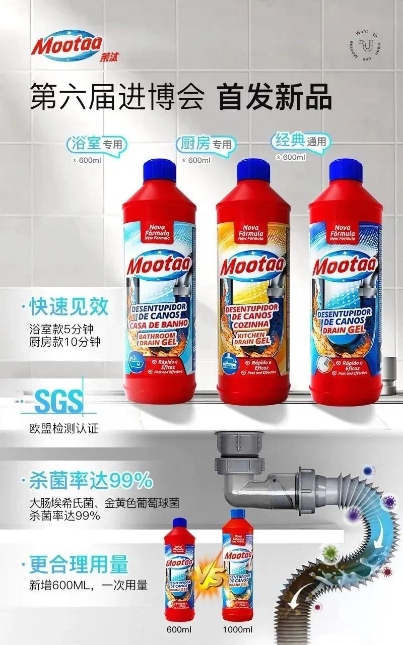 管道疏通剂600ml的厨房款、浴室款、经典款将在第六届进博会上首次亮相。
