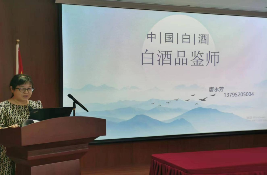 在品鉴环节,唐永芳女士向嘉宾们详细介绍了五款白酒以及酒功能中心自主品牌郡之酱的酿造工艺、口感和风味等特点。
