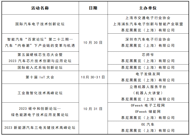 此次展会将同期举行精彩纷呈的“创新论坛”,围绕电动车、汽车电子、5G、嵌入式系统、物联网技术、碳中和、工业等热门应用市场与高速发展行业,邀请来自电子行业的业界领袖、技术专家、科研学者为与会观众答疑解惑,分享生产案例,提供先进技术解决方案。