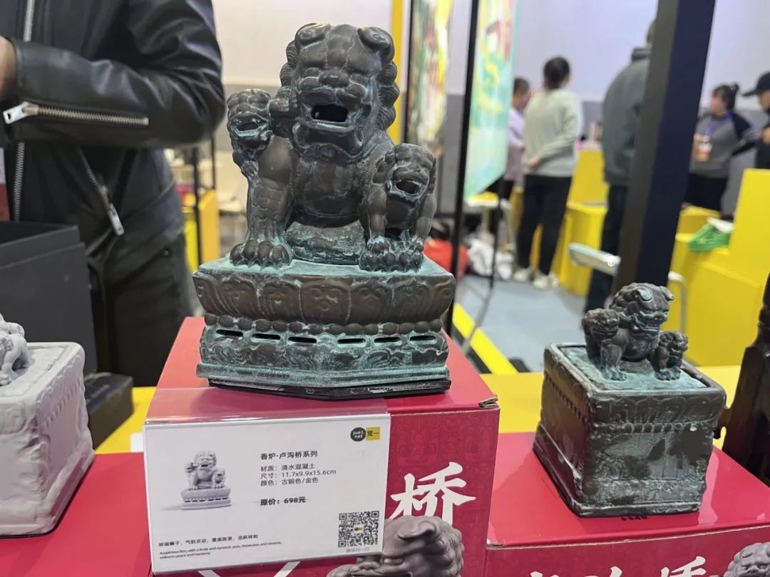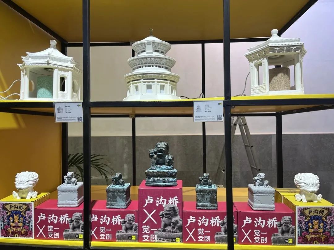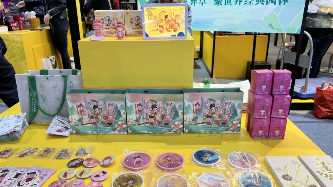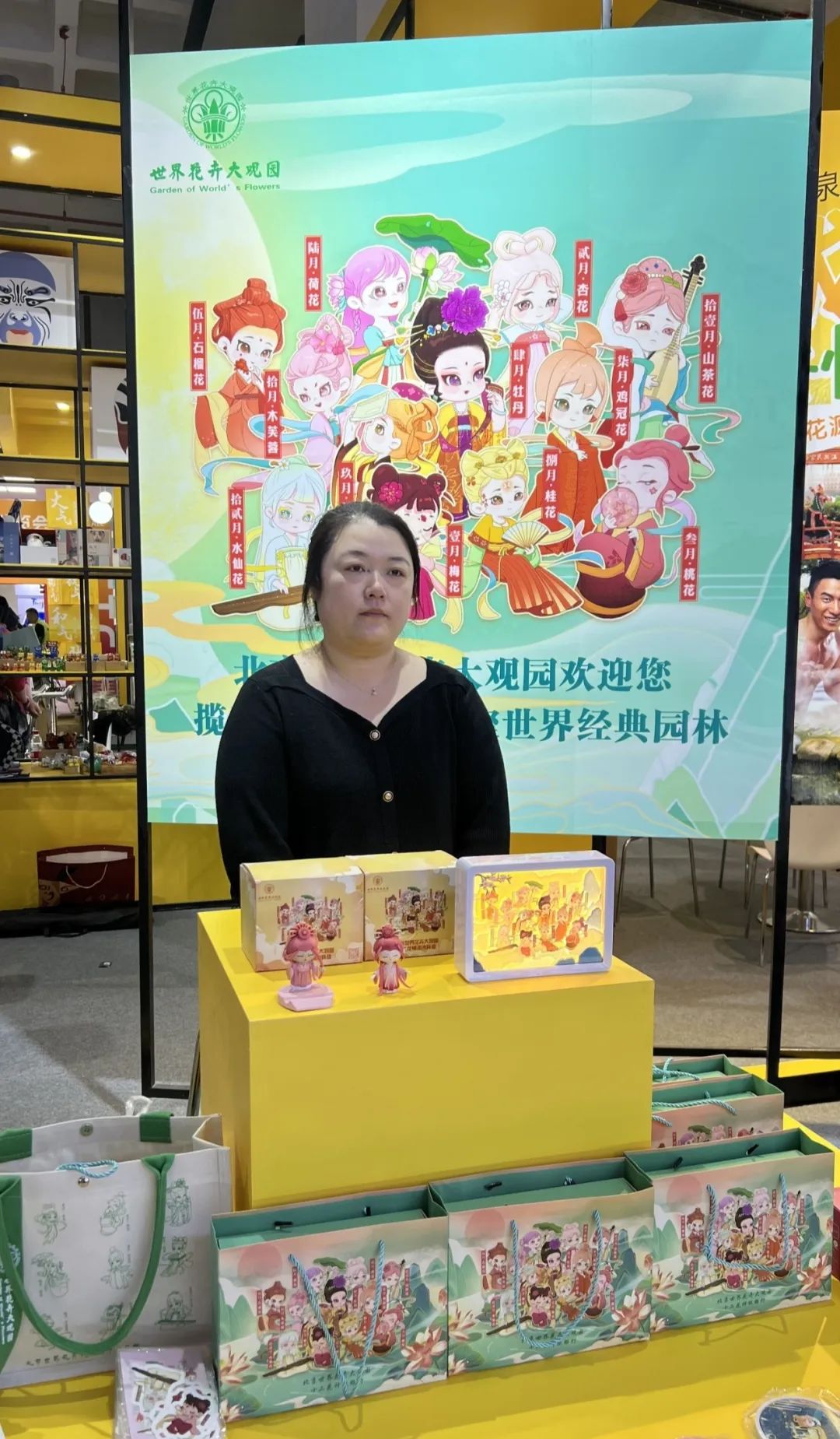 在文旅资源及商品展示区,可以看到北京南宫旅游景区、北京世界花卉大观园景区相继亮相,偌大的背景展,直观展示了景区秋季特色活动内容。旁边的商品展示区处整齐摆放着来自北京世界花卉大观园“十二花神”系列的文创衍生品,涵盖小摆件、贴画、钥匙扣、纸雕灯、礼盒以及植物IP形象等。榆构觉一文创推出的台灯·宫殿、台灯·云灯和以卢沟桥狮子为原型的极具丰台文旅特色的定制开发清水混凝土文创产品。融今文化带来的布艺、绣染、民俗等传统手工艺品,通过匠心独运的打造,别致的造型,传统与现代的完美结合,让现场观众看到了独特的东方美韵。