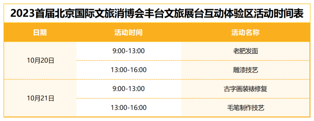 10月20日上午,2023首届北京国际文旅消费博览会在中国国际展览中心(朝阳馆)盛大开幕。其中,以“妙笔生花 丰宜福台”为主题的丰台展区更是亮点纷呈,现场提供有趣好玩的非遗互动体验、特色文旅资源及活动宣传推介,让您深度感受丰台的独特魅力。