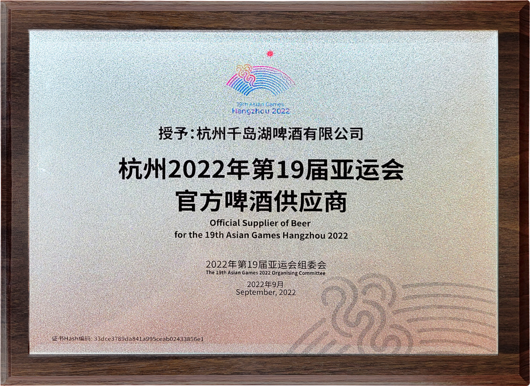 9月,千岛湖啤酒成为杭州亚运会官方指定啤酒。