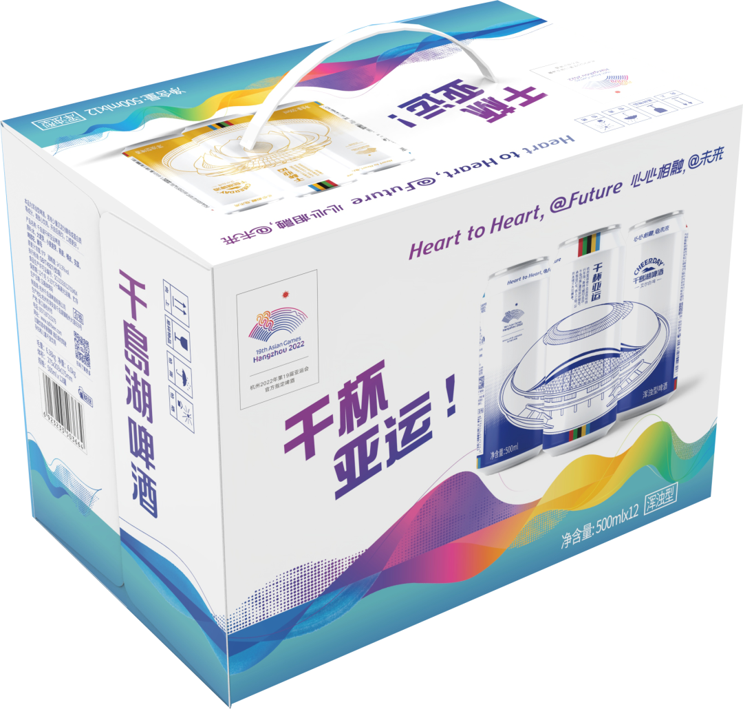 为预祝第19届亚运会胜利举办,作为赞助重要洲际综合性运动会的中国本土啤酒品牌,千岛湖啤酒通过各方面原材料层层把关,口感层层筛选,特开发了一款亚运会纪念啤酒——“干杯,亚运!”。