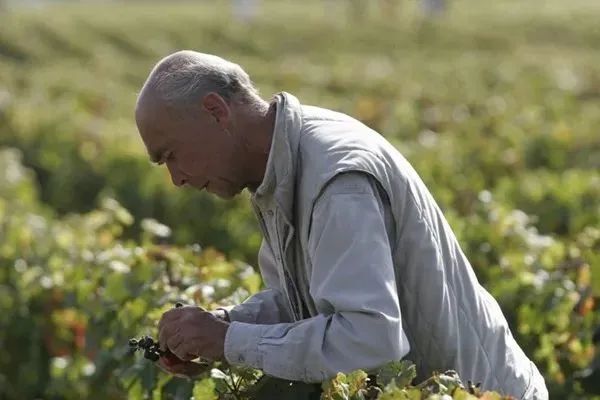 ▲罗曼尼康帝酒庄掌门人奥贝尔·德维兰在采收前在葡萄园里尝果以确认其成熟度