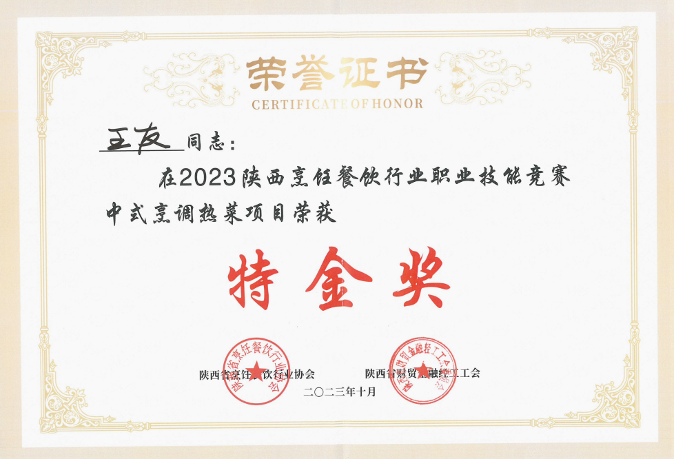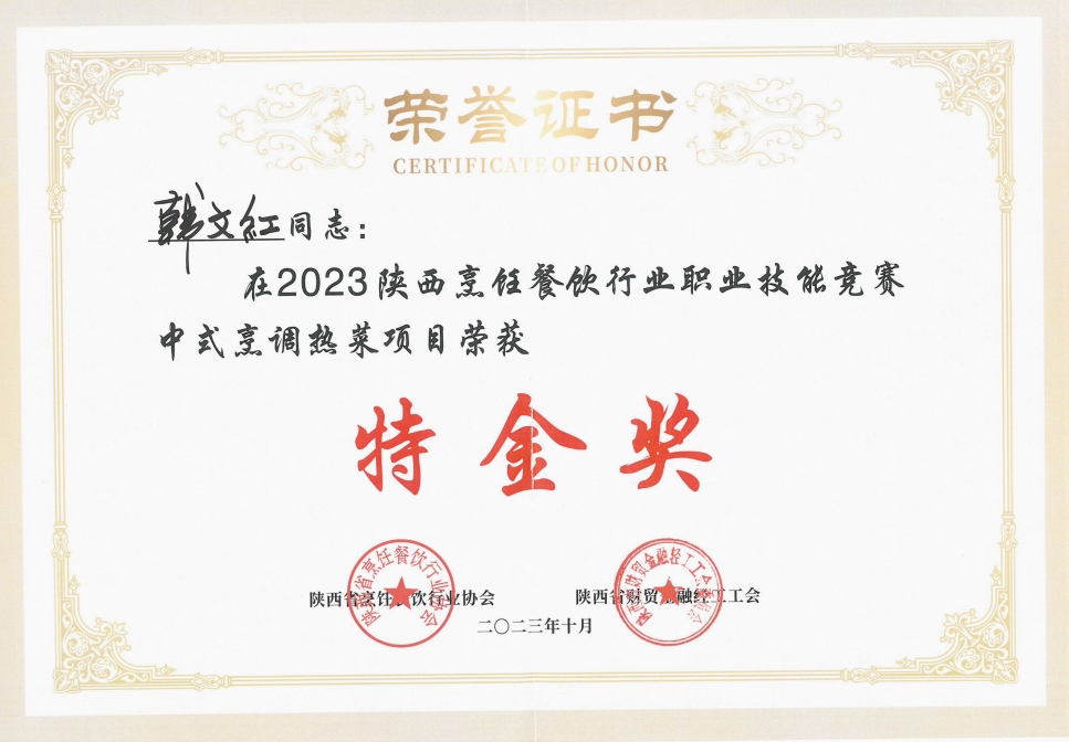 10月11日,2023年陕西省烹饪餐饮行业职业技能竞赛在蓝田闭幕,宝石花物业长庆油田地区公司获得特金奖7个,金奖3个,银奖1个,实现了参赛奖项全覆盖的优异成绩,获奖数量位列所有参赛团体第一位。