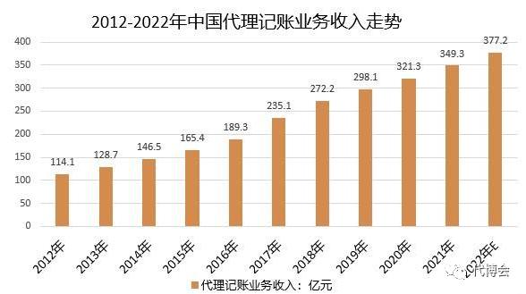 截至2022年底,全国已注册代账机构超7万家,各级代理记账协会160个,服务企业近一千多万家。据相关数据数据,2021年代理记账行业业务收入逾349.3亿元。