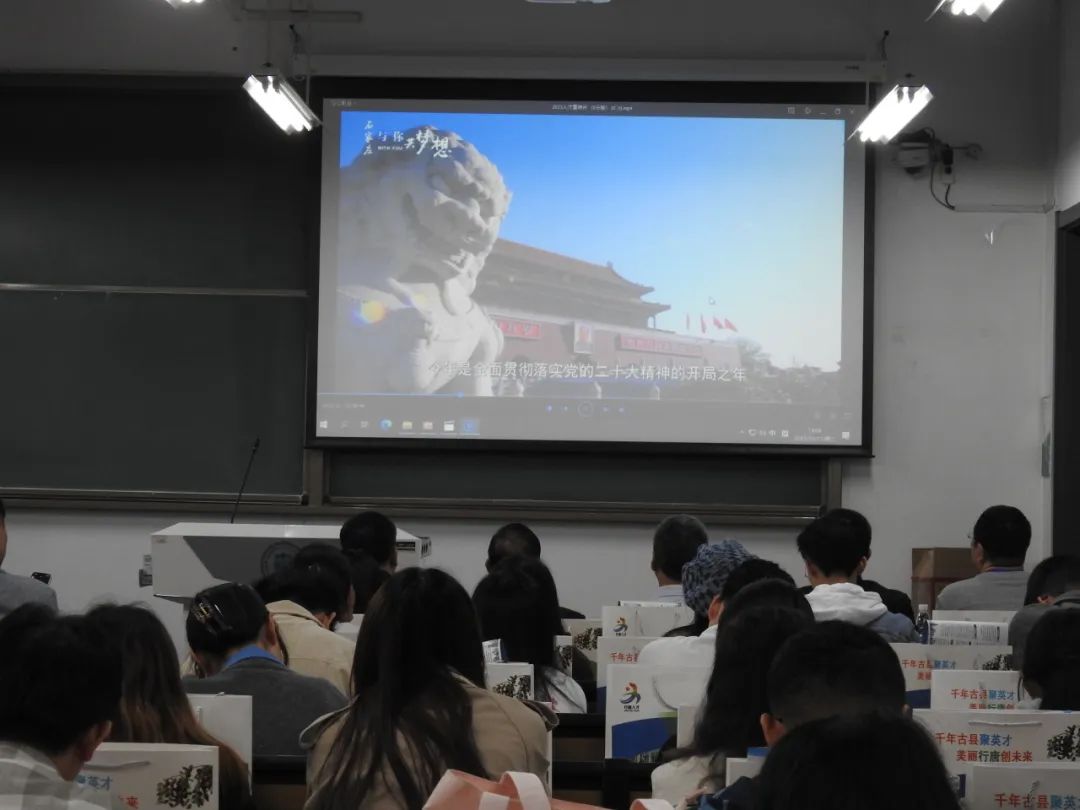 接下来,宣讲团放映了石家庄文旅宣传片,让现场的同学们对石家庄的历史文化有了深入了解。作为红色城市,石家庄具有重要的红色文化资源;作为历史资源丰富的城市,石家庄具有较多文化遗产;作为重要的交通枢纽,石家庄既保持现代性又不失历史底蕴,是一座多方面综合型城市。结束放映后,卢彦冬表示,石家庄作为历史及现代并存的城市,既有深厚的历史底蕴,又具有青年群体喜欢的自由,是个宜居的年轻城市。