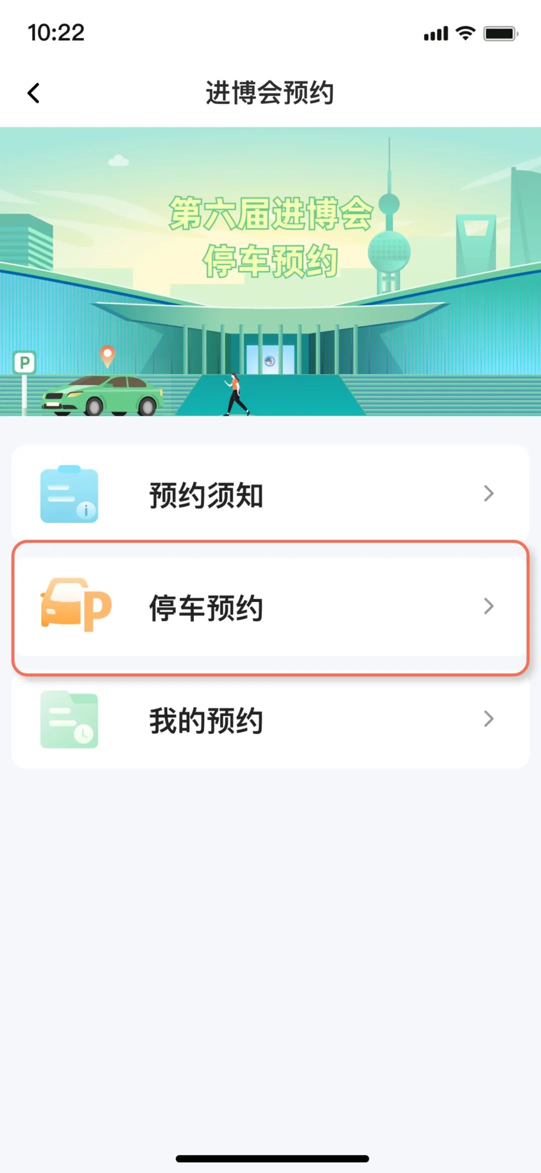 点击“停车预约”,选择“进博会停车预约”↓
