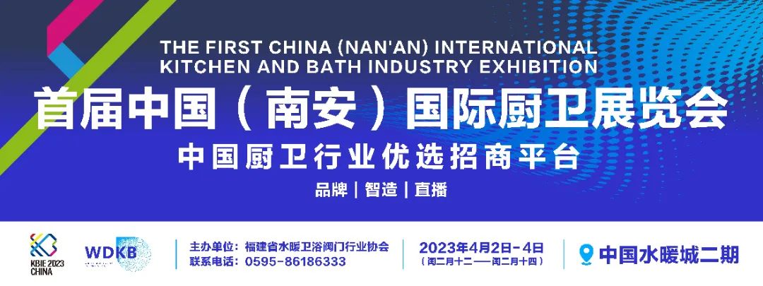 以“品牌·智造·直播”为主题的2023中国(南安)国际厨卫展览会(KBIE·CHINA)将于2023年4月2日-4日在中国水暖城二期盛大举办!