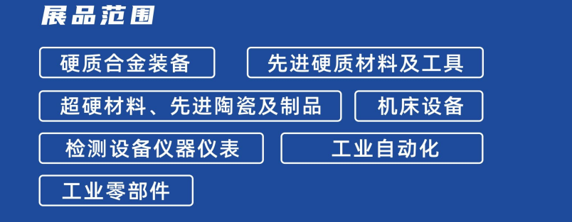 展品范围涵盖:硬质合金材料、金属陶瓷、硬质合金工具和制品、金属模具、配套设备等。展馆设置600个展位,吸纳300家应用厂商,开设韩国展团、台湾展团及国内10家行业协会主题展团,预计可吸引国际国内10000+人次专业观众到场参观。