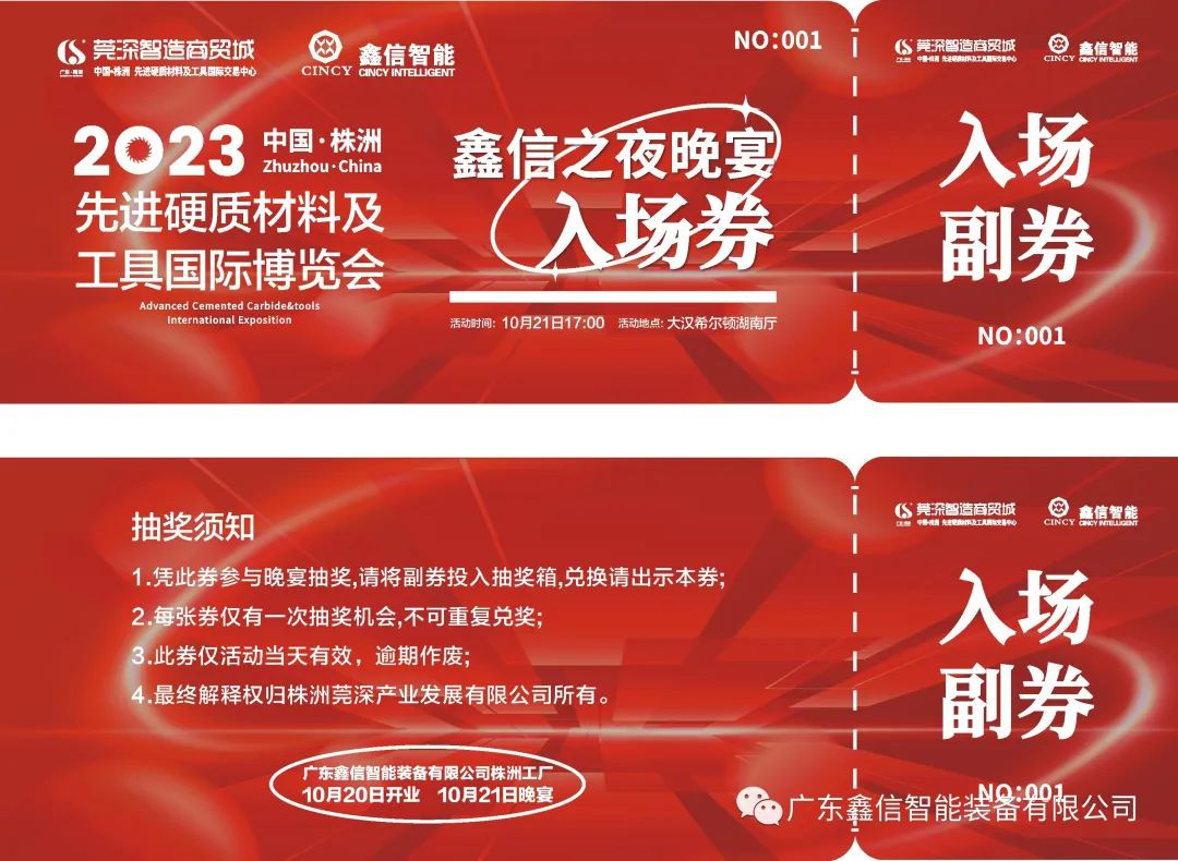 预祝“广东鑫信智能装备有限公司株洲分公司”将于2023年10月20日正式开业,10月21日下午17:00株洲大汉希尔顿大酒店湖南厅“鑫信之夜”晚宴欢迎您的到来!
