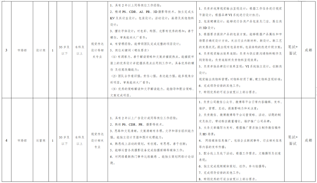 (四)考核。考核方式依据岗位要求设定,具体见附件《四川天府龙芽股份有限公司招聘岗位表》。应聘人员根据公司通知的招聘考核时间、地点,携带有效身份证原件参加。