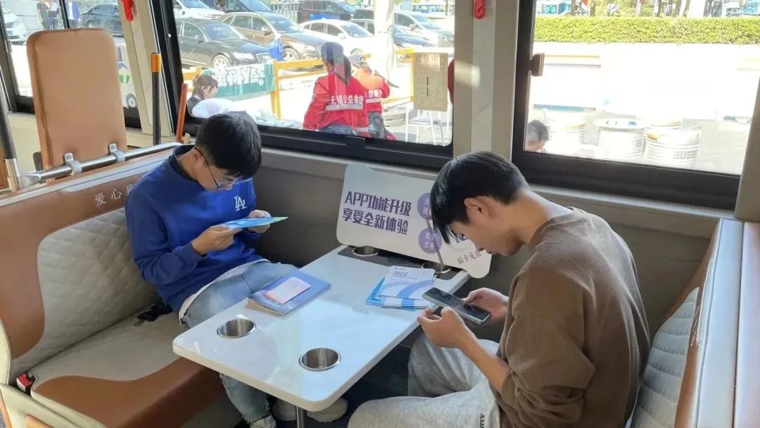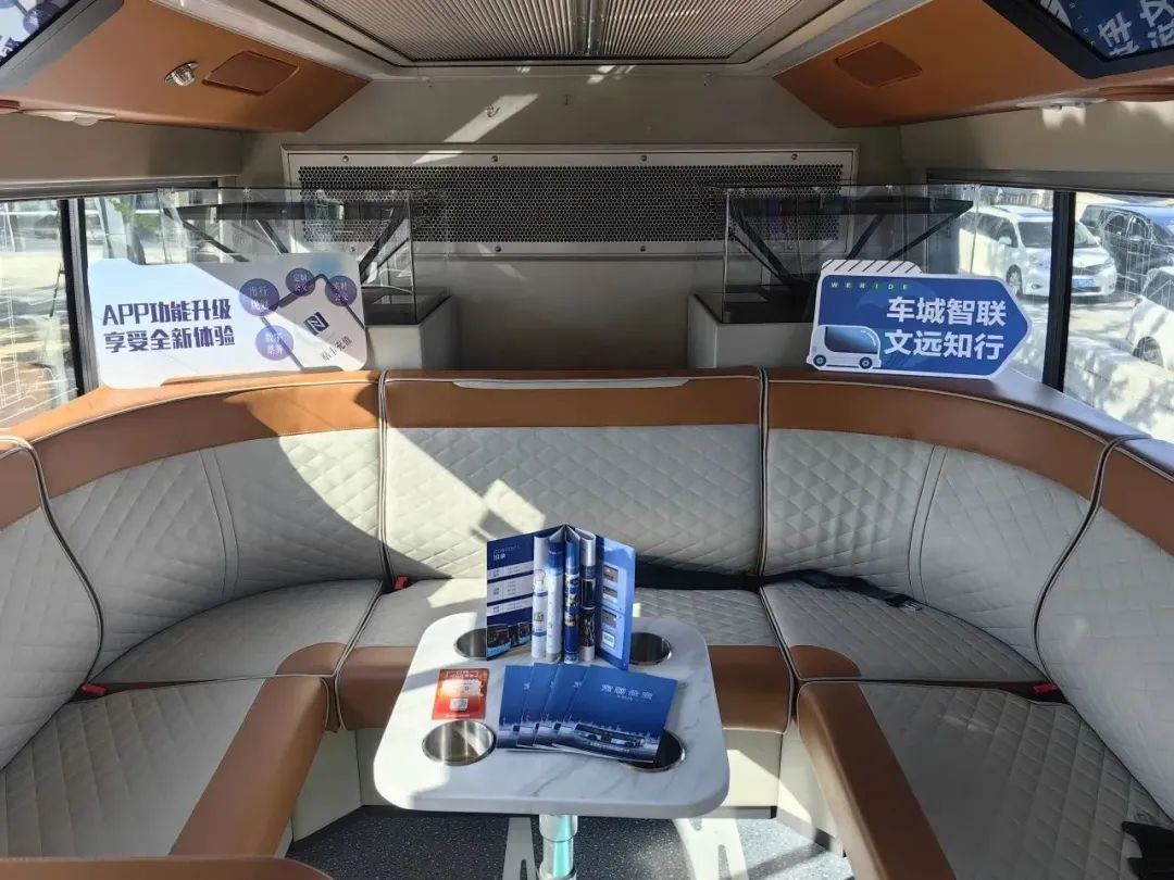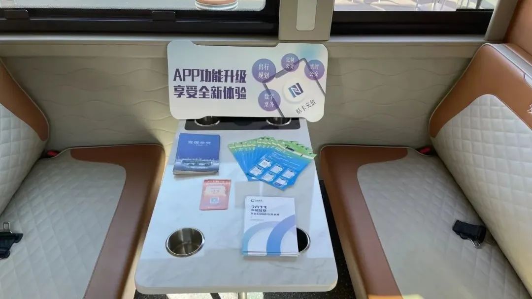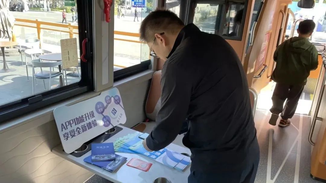 车厢内布置了能让参展客商及市民了解“无锡智慧公交”App2.0版本、新增线路规划、动态公交、数字票务、贴卡充值、巴士电站等一系列运行新模式的宣传册,集团公司致力于打造出“一个平台+N个应用”的数字化一站式出行服务模式。