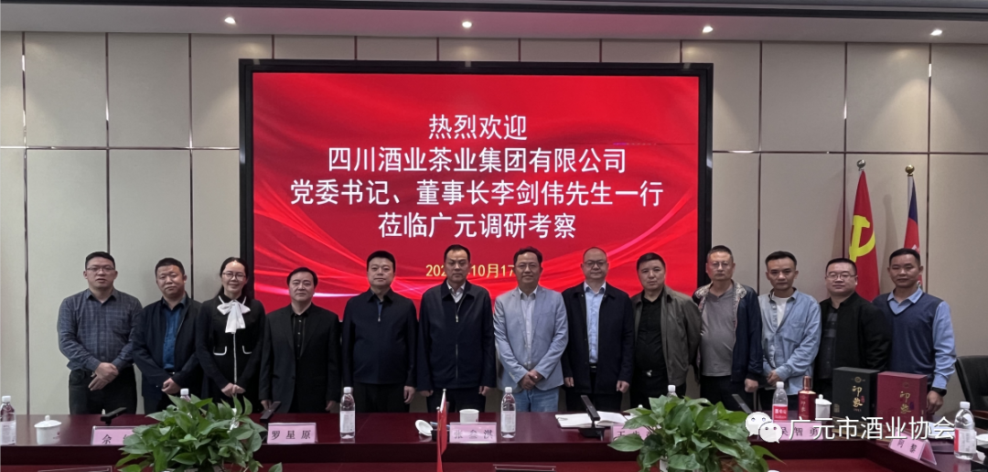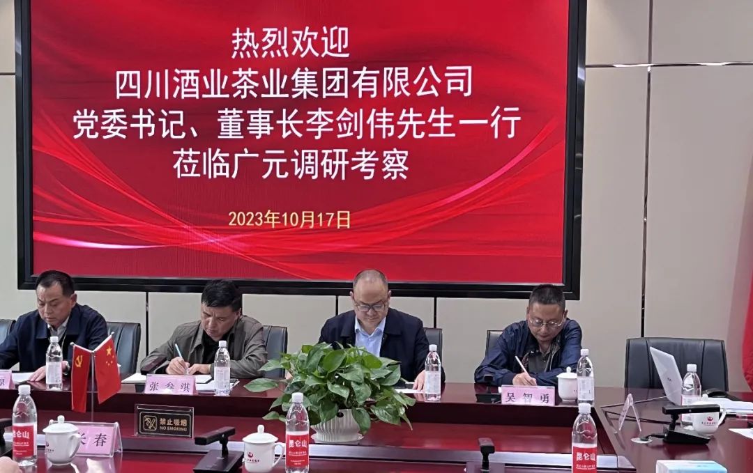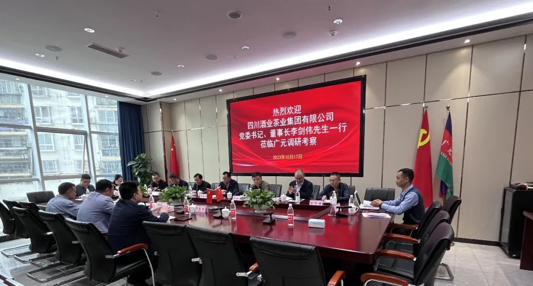 2023年10月17日,受广元市酒业协会邀请,四川酒业茶业投资集团有限公司董事长率团抵达广元,对广元酒业及茶业发展进行了实地调研考察,并听取了情况介绍。此次调研考察活动是四川酒业茶业投资集团有限公司对广元酒业、茶业发展意向性合作的首次调研,对广元酒业茶业的发展意义重大。