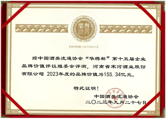 9月27日,第十五届中国酒类企业品牌价值发布会于北京国家会议中心隆重举办。经企业品牌价值评议委员会评测,宋河酒业2023年度的品牌价值为155.34亿元。作为河南唯一的浓香型中国名酒品牌,宋河酒业同时在会上斩获多项殊荣,尽显老名酒的品牌风范。宋河酒业有着辉煌的历史,曾是河南省内当之无愧的“酒王”。据宋河酒业官网介绍,1968年,鹿邑县人民政府为了挖掘文化遗产及悠久酿酒技艺,将二十余家较大的酿酒作坊进行联合,以宋河之滨原有枣集酒坊为基础,建立了国营“鹿邑酒厂”,并于1988年更名为宋河酒厂。同年,在全国第五届评酒会上,宋河粮液被授予国家金奖,并与茅台、五粮液等17款名酒一同荣获全国第五届评酒会“中国名酒”称号。