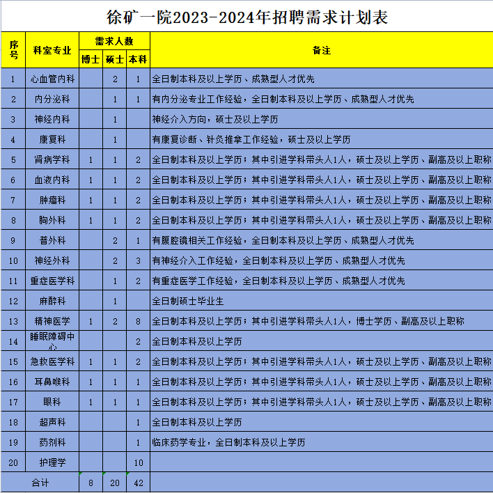 根据三级综合医院标准和各专业科室发展需要,长期招聘内科、外科、妇产科、儿科、精神医学、重症医学、急救医学、耳鼻喉、眼科、医学影像学等专业医疗人才,全日制本科及以上学历,硕、博学历、成熟型医疗人才优先。