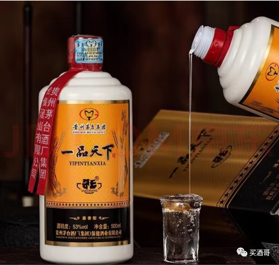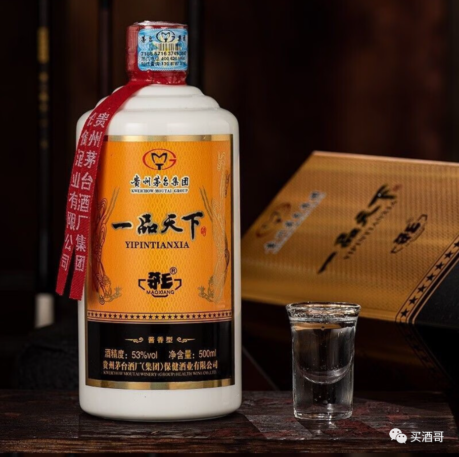 茅台一品天下酒是贵州茅台酒股份有限公司的一款高端白酒,其品牌诞生于2019年。作为茅台酒的“品牌二号”,它以细腻丰富的香味和高级的品鉴体验著称,备受消费者喜爱。茅台一品天下的产品特点包括采用先进的酿造工艺、选用优质的酿造原料、具有浓郁的酱香味和细腻的口感、入口甘润、余味悠长。它在全网范围内的评测报告获得了一致的好评,大多数消费者给予它高端、高品质的评价。