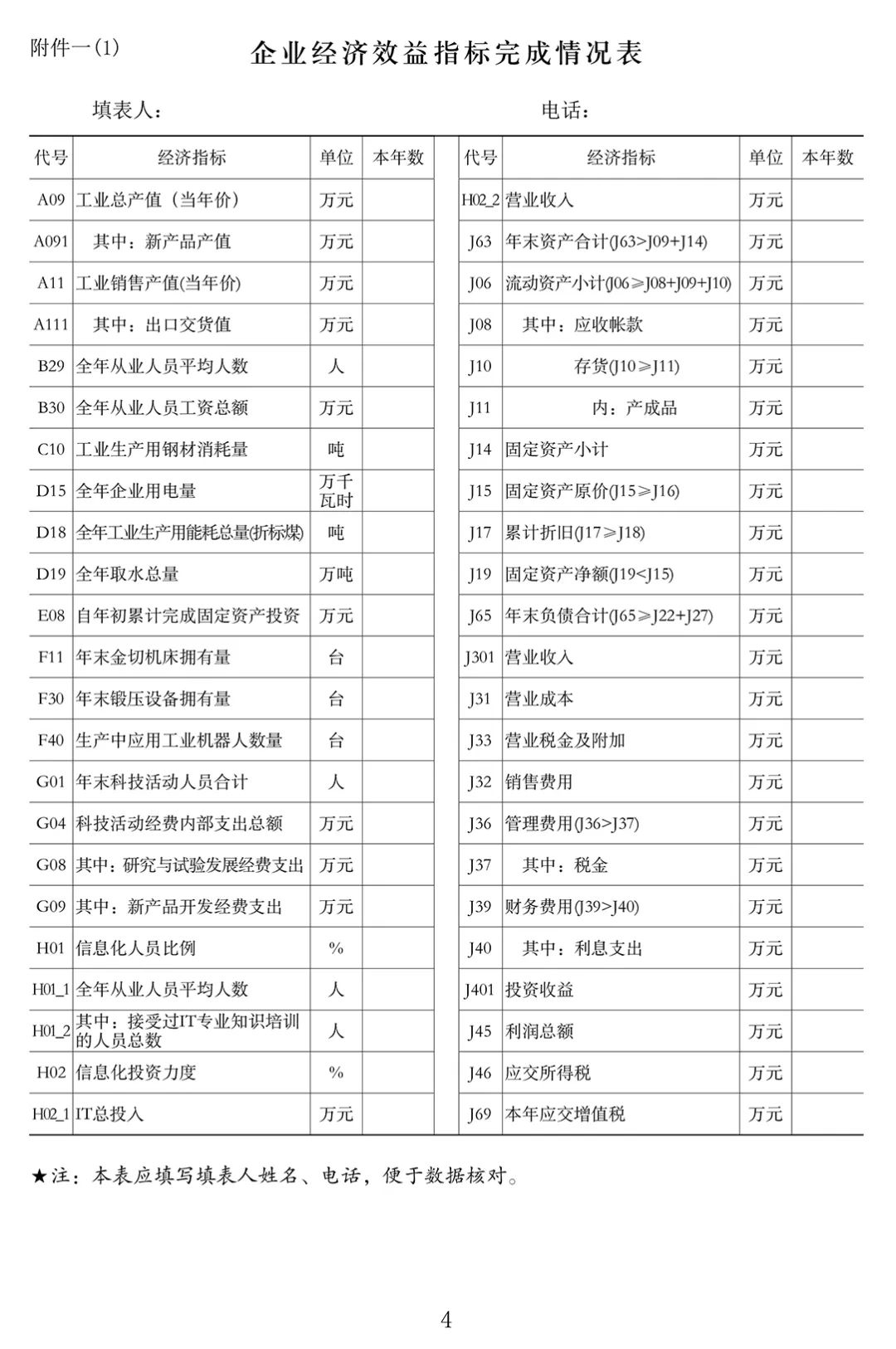 四、附件一各表应分别注明的通信地址、联系人和电话等信息,封面中的通信地址用于反馈汇总的《年报汇编》资料,务必确保准确,以便于资料邮寄到联系人。每页报表上填写的填表人姓名、电话等信息,用于数据核对。